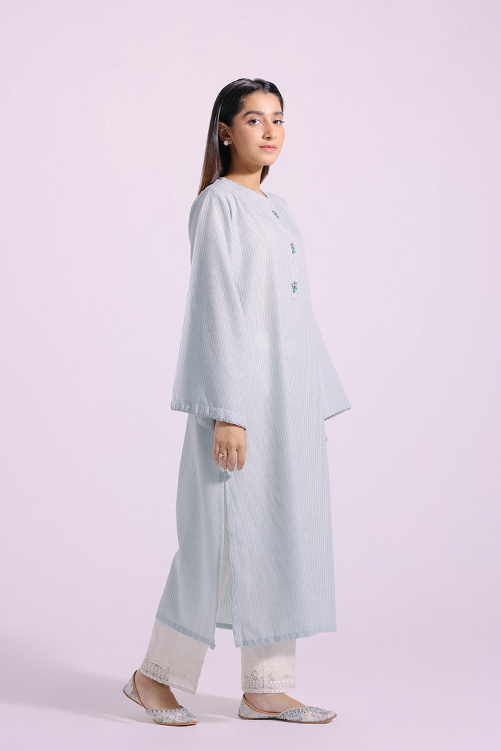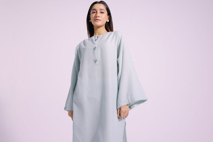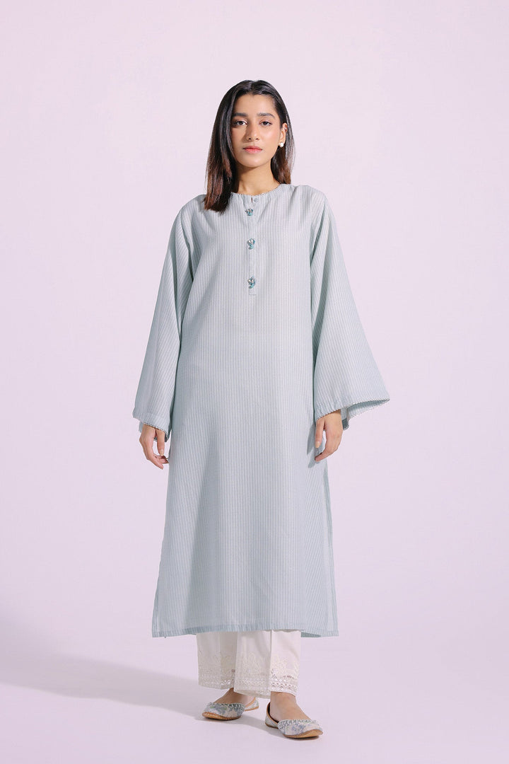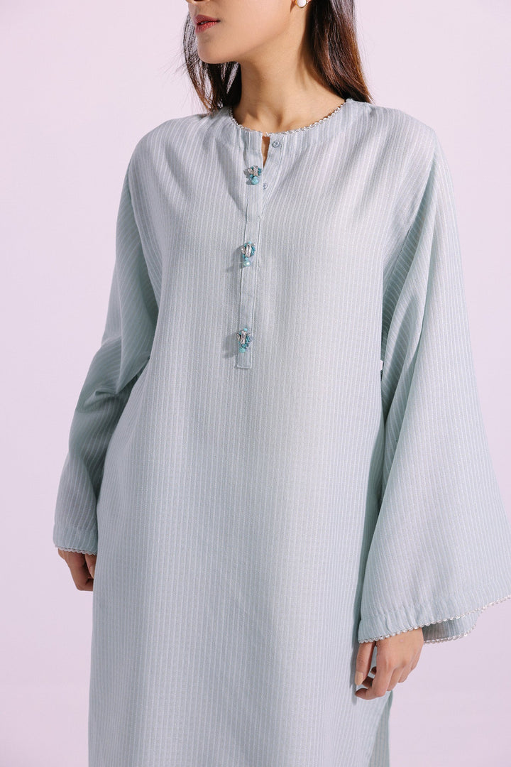 This style statement shirt is the perfect addition to your wardrobe. Crafted from a classy, chic, and elegant light green fabric, it features an A-line silhouette shirt embellished with scintillating beads at front placket, guaranteeing a dazzling look with its contemporary design.