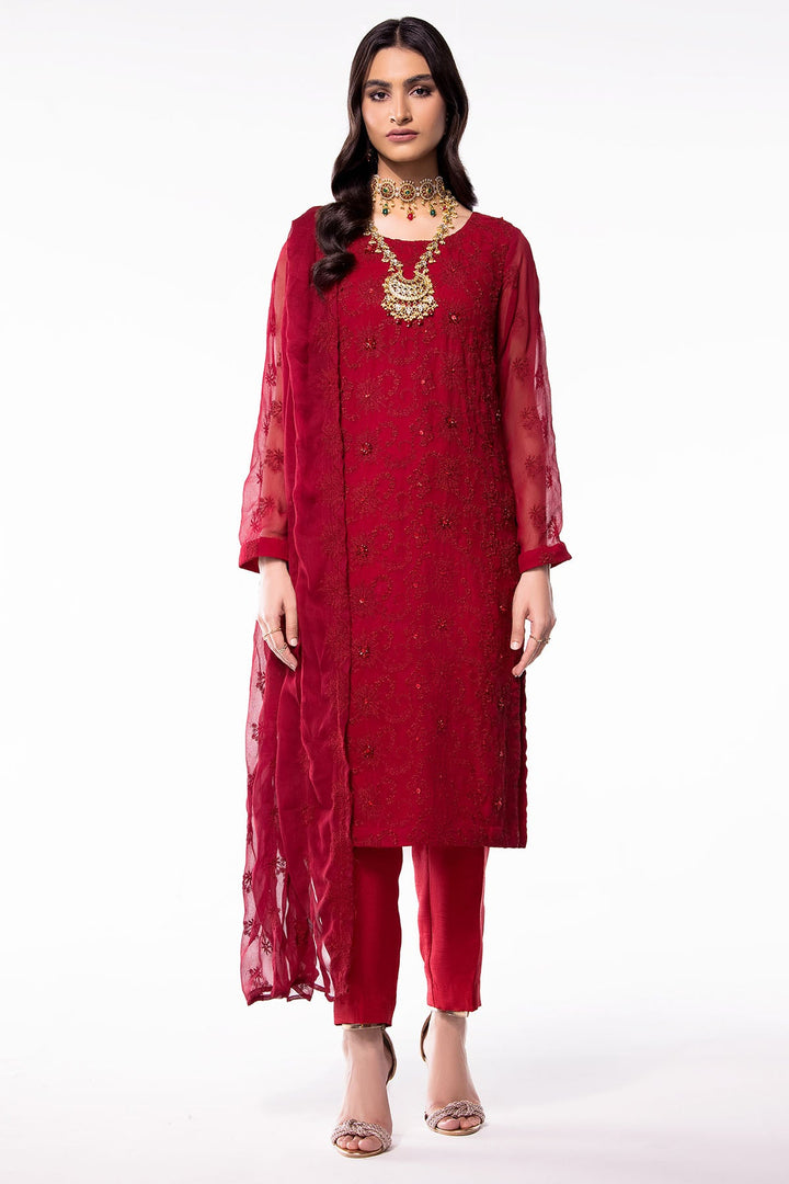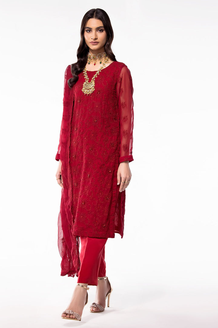 Schiffli Embroidered Hand Embellished Crinkle Chiffon Front 1.15 M