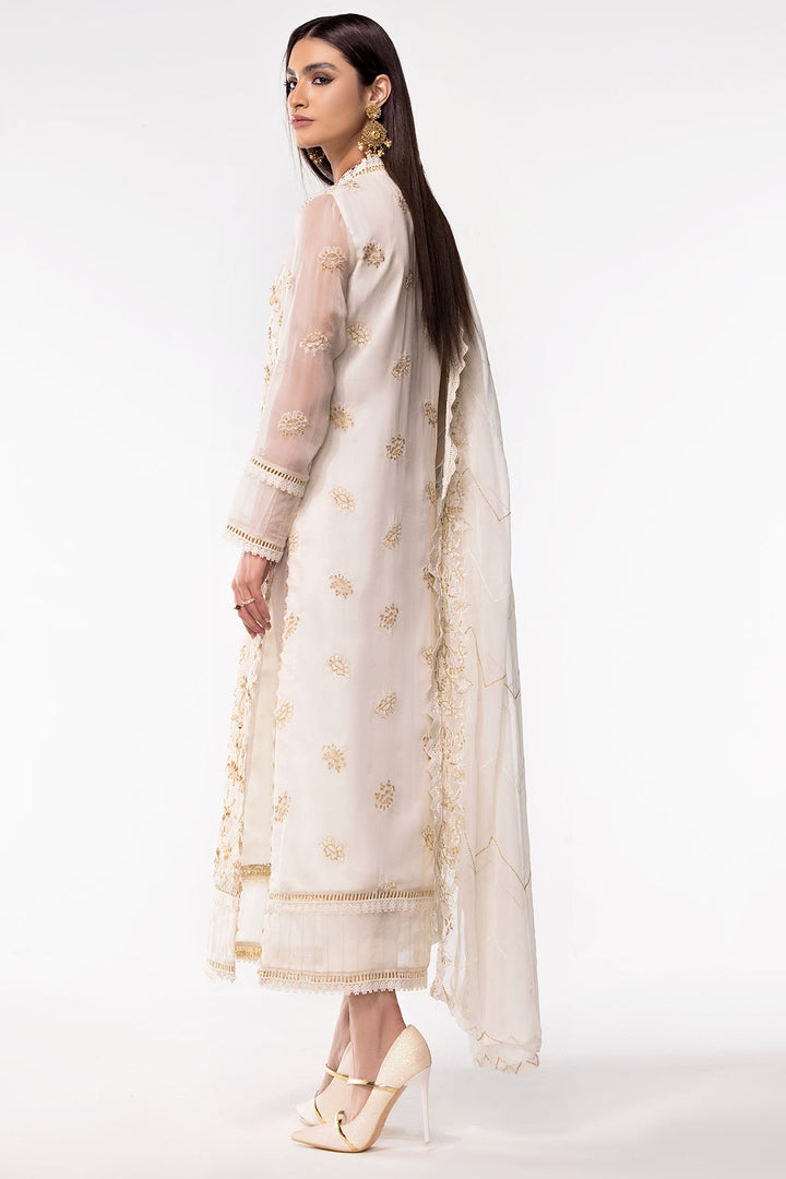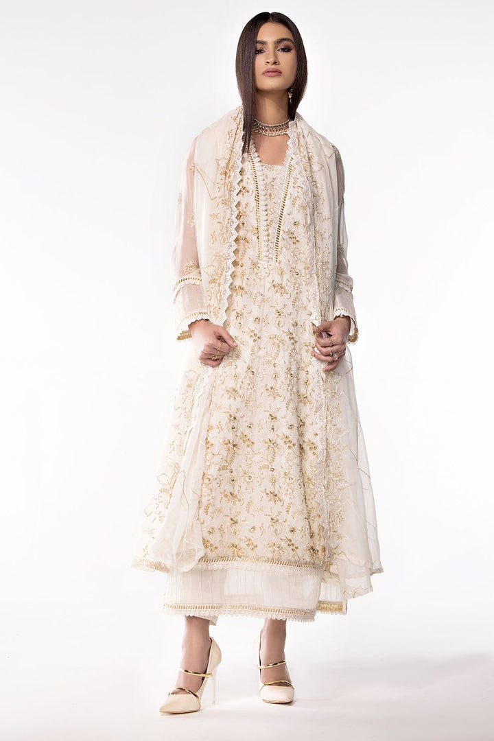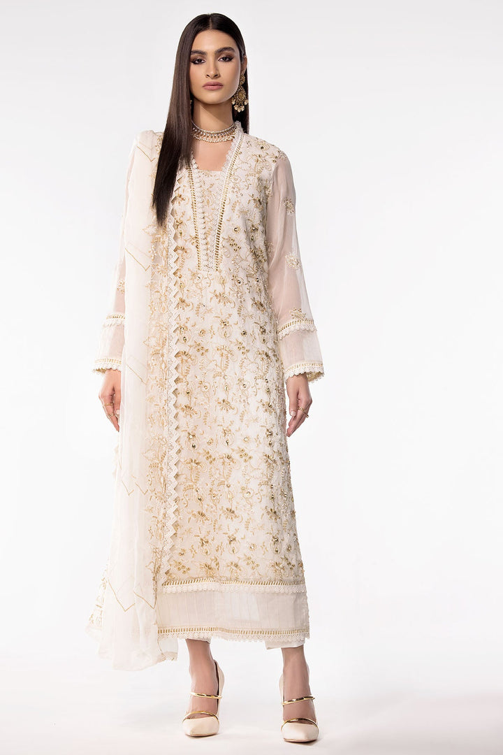 Schiffli Embroidered Hand Embellished Crinkle Chiffon Front 1.15 M