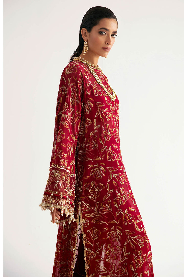 Embroidred Shirt (Chiffon) Red 3 Meters