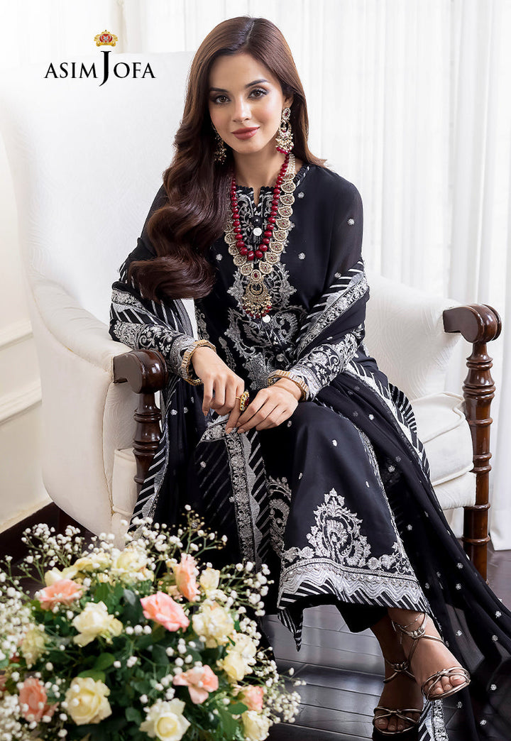 Nothing can beat the elegance of black, especially when it is adorned with exquisite white embroidery. This black number has a touch of sophistication, thanks to the delicate embroidery on the neckline and sleeves. A stunning embroidered border adds contrast and flair to the daman showcasing the designer’s artistic vision. Step into the spotlight and make heads turn! Own this magnificent outfit from the 'Jhilmil Collection' and embrace the enchantment that awaits.