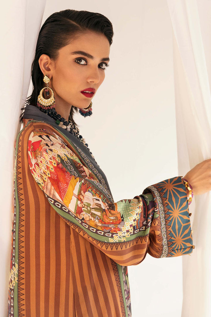 ‘Milica’ is a classic silk tunic featuring a relaxed, flowing silhouette showcasing an enchanting Mughal print. The captivating art work on the plush silk coffee toned canvas is an instant style statement suitable for day and night wear!