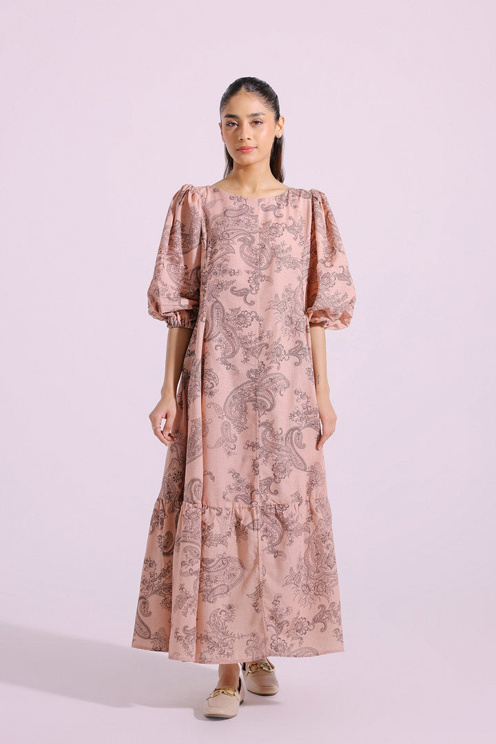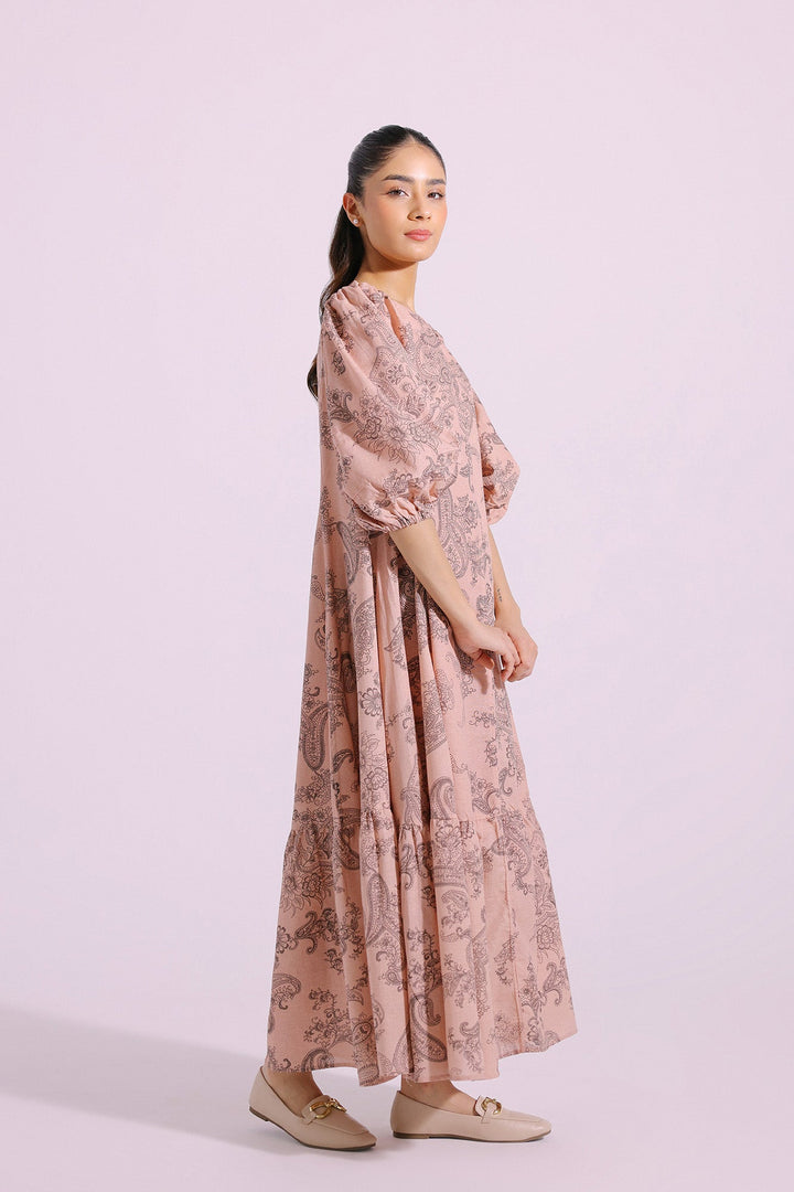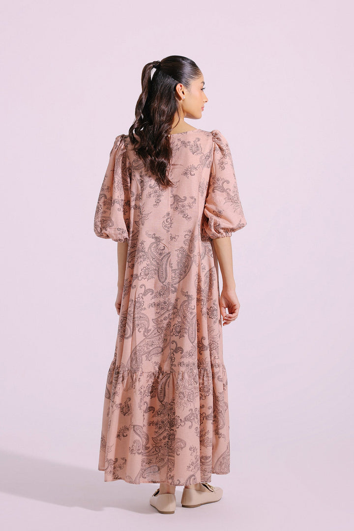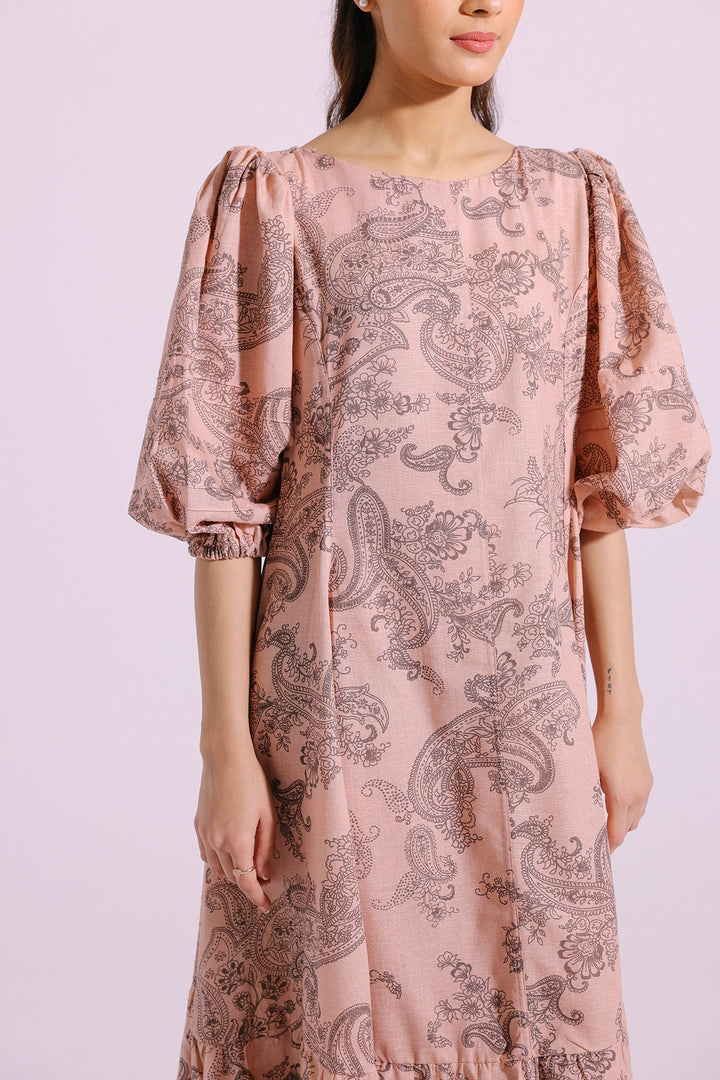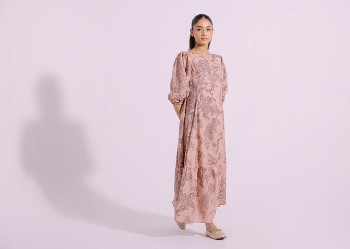 Style like a diva in this vibrant dress rendered in pale pink shade. Crafted in a contemporary silhouette with gathers at shoulders, this gorgeous dress is beautifully adorned with artistic floral prints in deep tones. Style this statement dress at fun events this season.