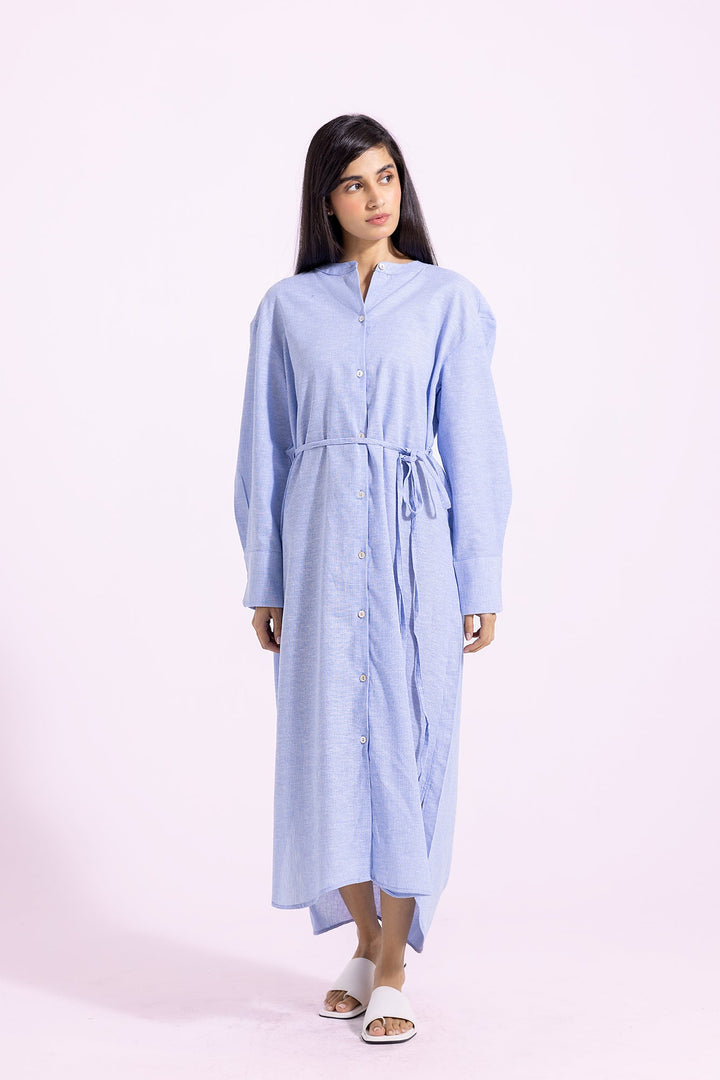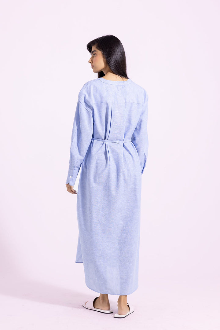 This graceful dress is the perfect statement piece for any fun event. It features an elegant, button down silhouette portrayed in a soft baby blue color illustrating a contemporary look. Wear it at day events this season and it's a must-have for any fashionista.
