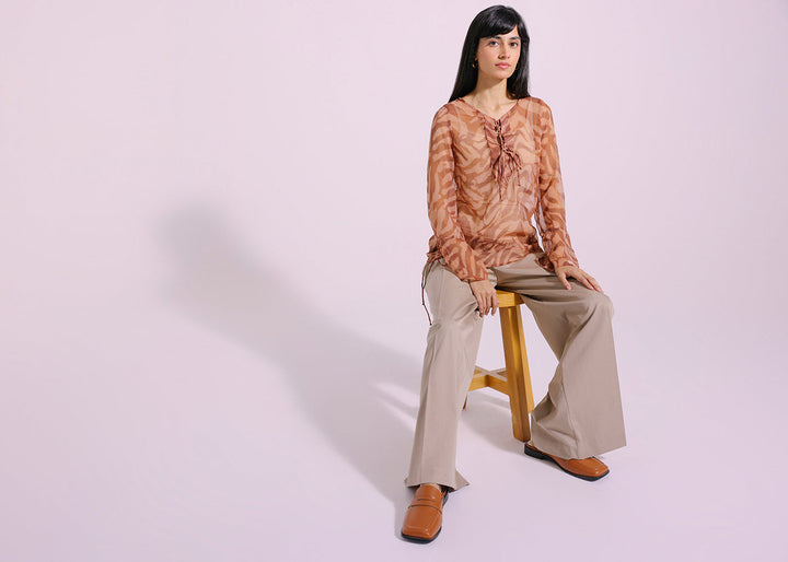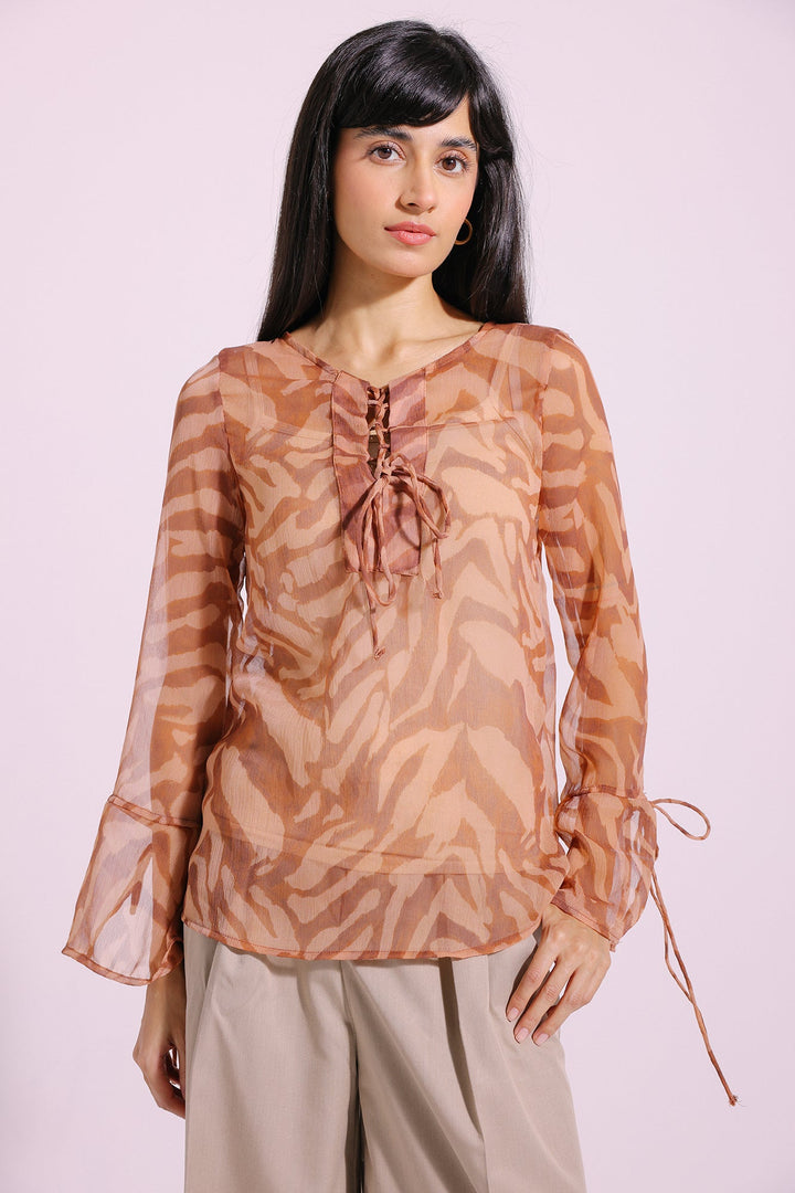 This trendy shirt is a graceful, elegant addition to your wardrobe that will instantly add a contemporary touch. The mid orange shirt is highlighted by captivating animal pattern printed in light shades, making it perfect for this party season. Enjoy a gorgeous look and stylish feel with this design.