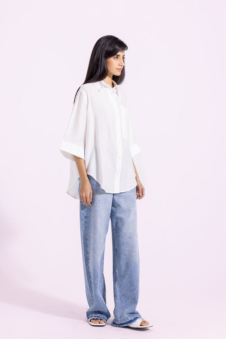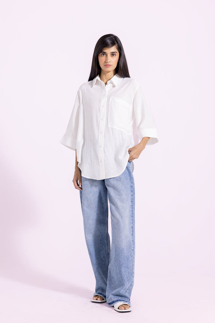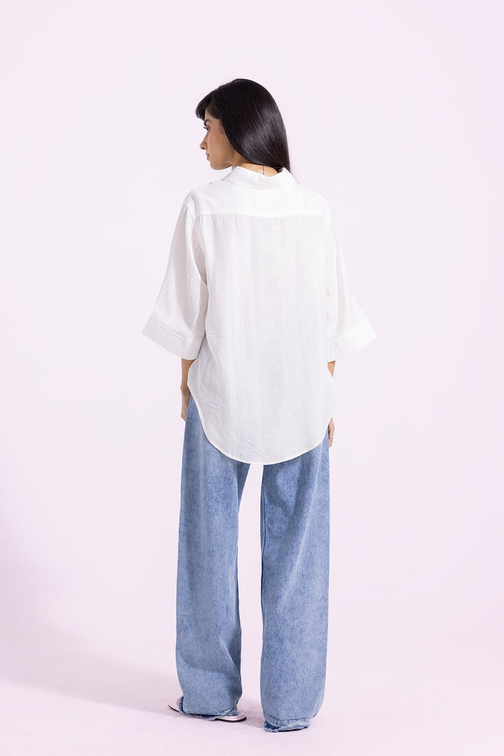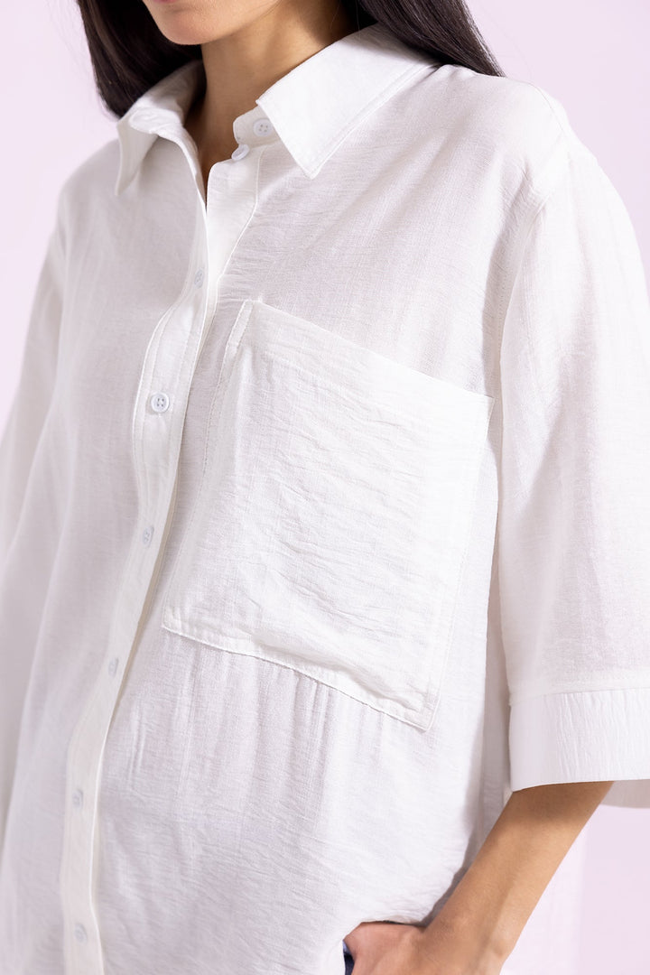 A classy yet elegant design is portrayed on this contemporary button down shirt rendered in a classy white shade. Crafted in an resplendent silhouette with collar neck, this trendy shirt is a great option for casual gatherings.