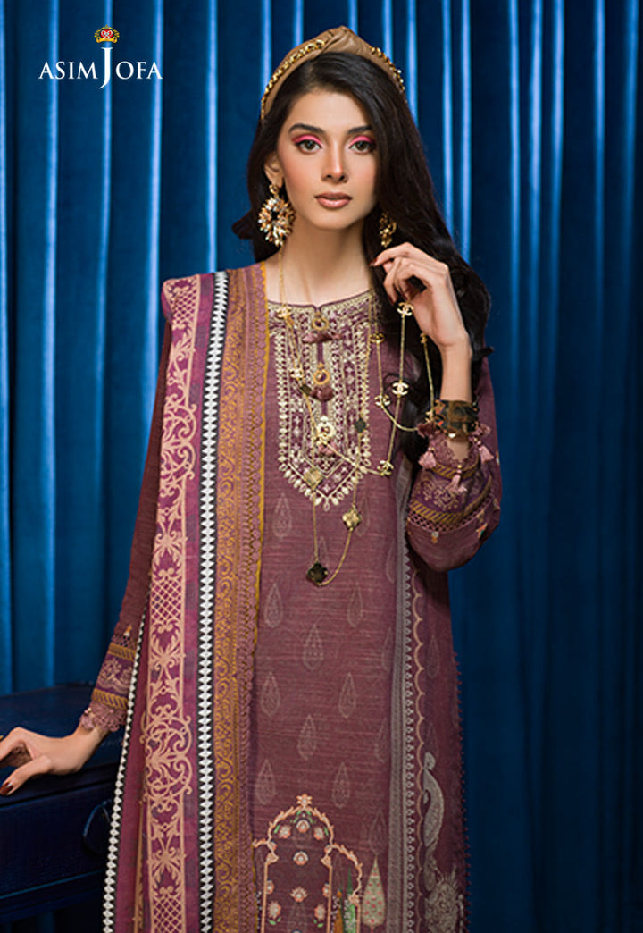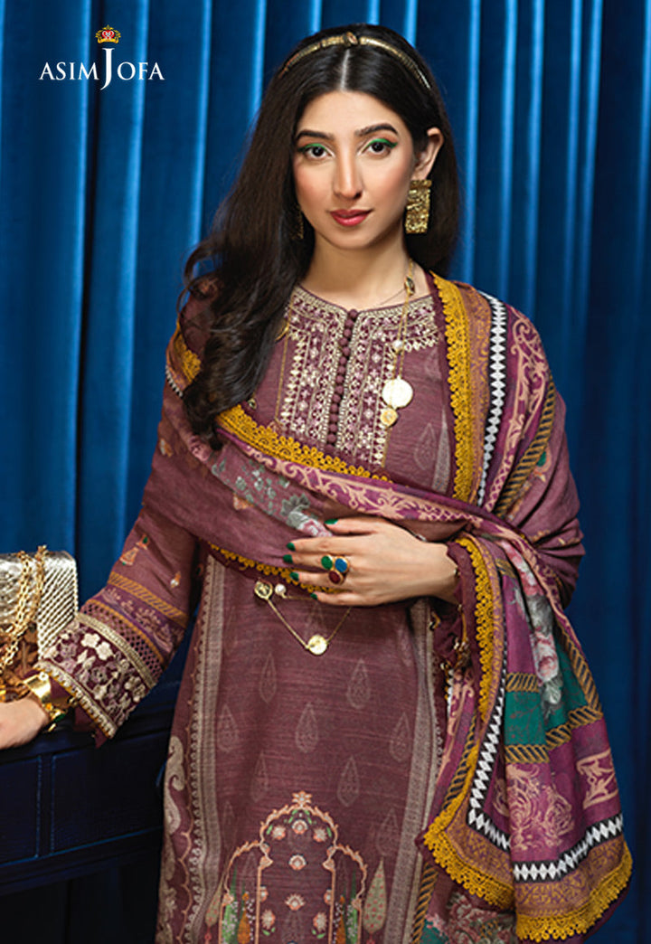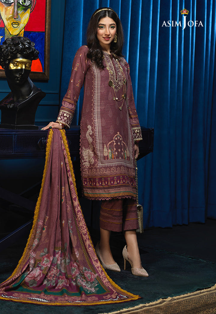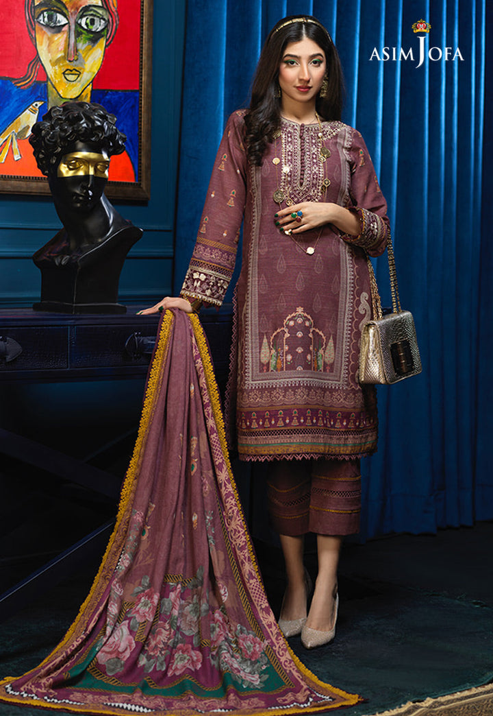 An ethnic print is etched on textured khaddar in a kurta style. Its topped with embroidered neckline and embroidered border which can be styled in numerous ways. This design boasts a printed trouser and dupatta making it an ideal staple for your winter wardrobe.