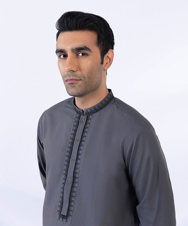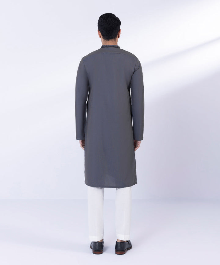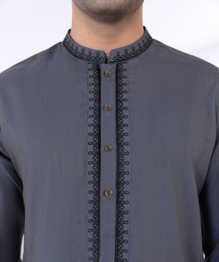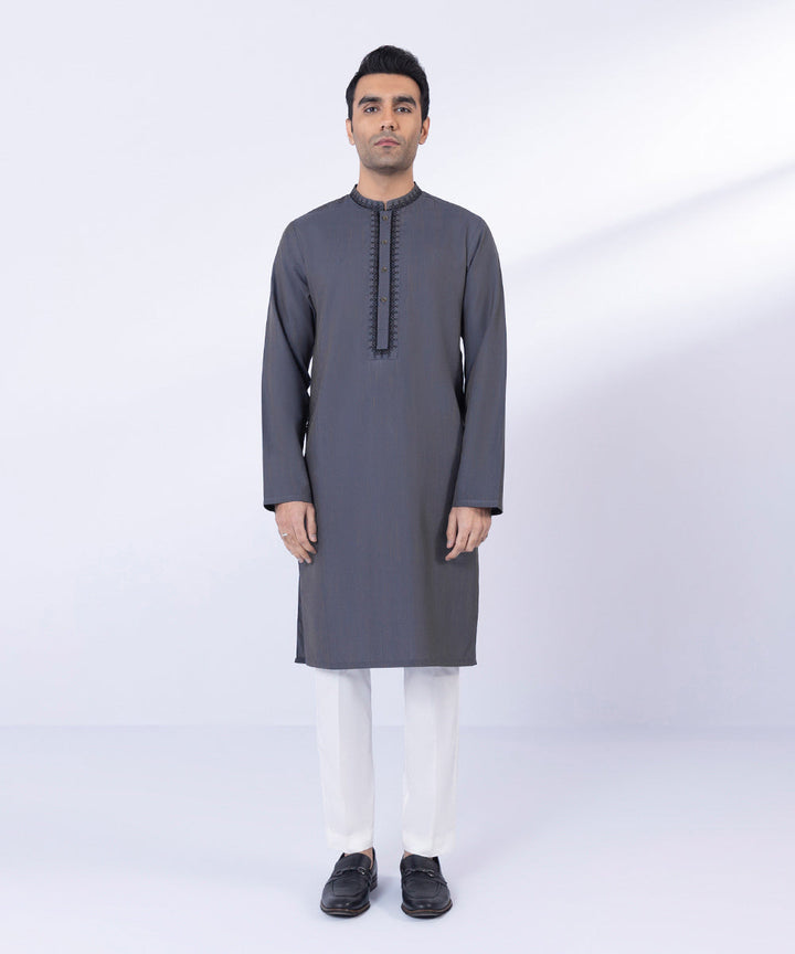 Embroidered Front, Plain Back, Full Sleeves, Band Neckline