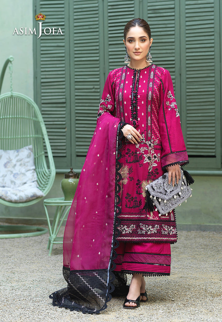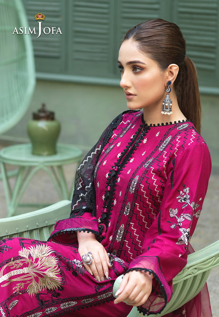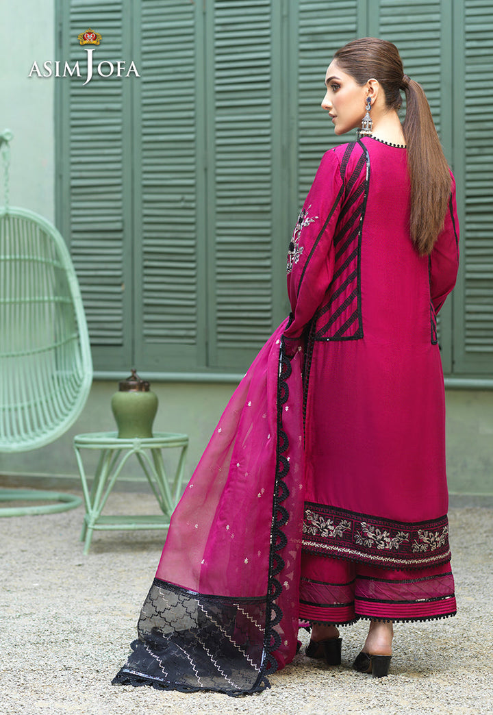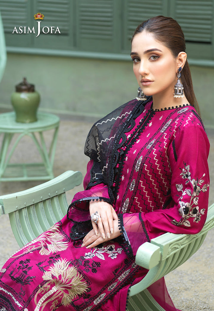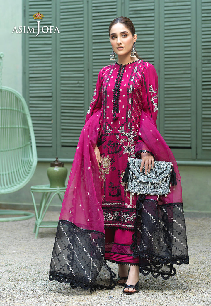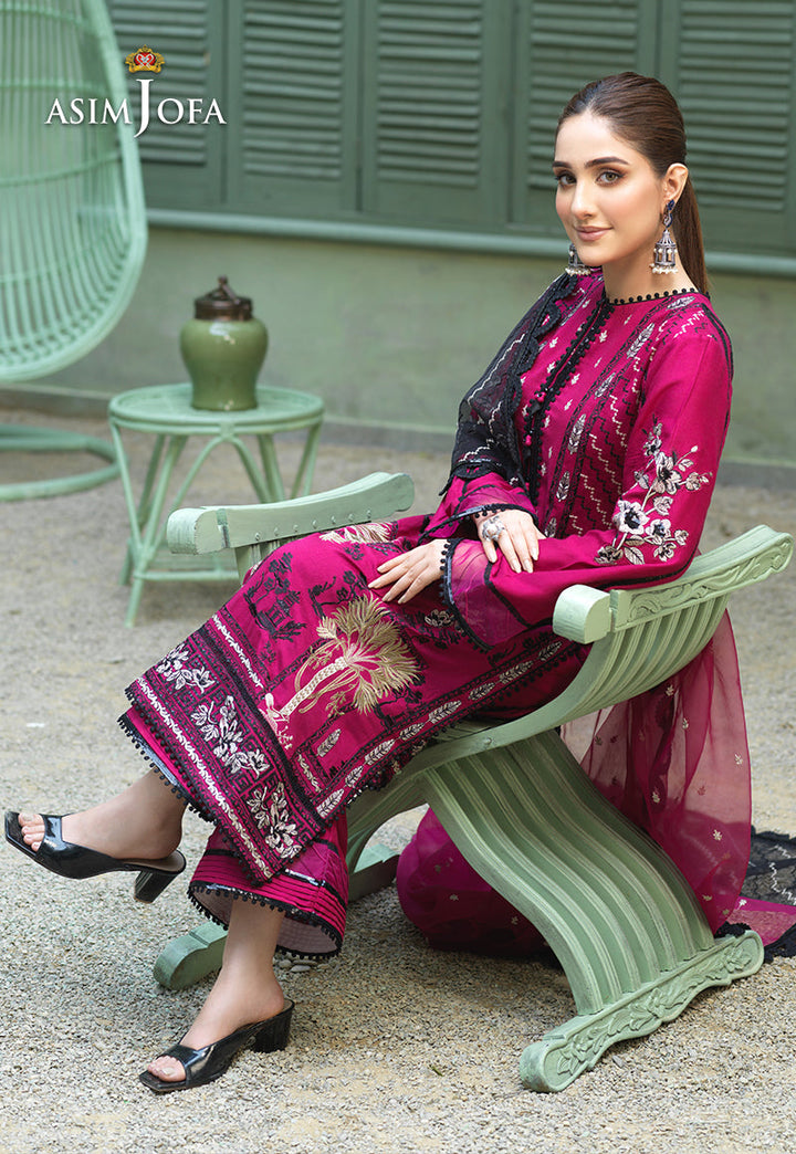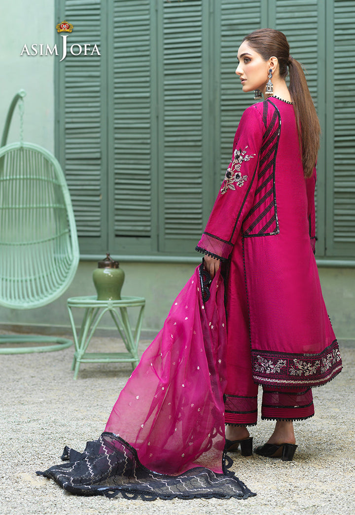 With her beatific smile and a twinkle in eyes Aiza Awan wins hearts in this stunning carmine attire. The shirt is heavily decked with threadwork inspired by Chinese lore. A classic combination of black and deep beige with glinting black sequins works wonders on this cotton net base. The dupatta is done in color block style having diagonal lines embroidered on pallu and scattered motifs in the center. It comes with dyed cotton silk pants.