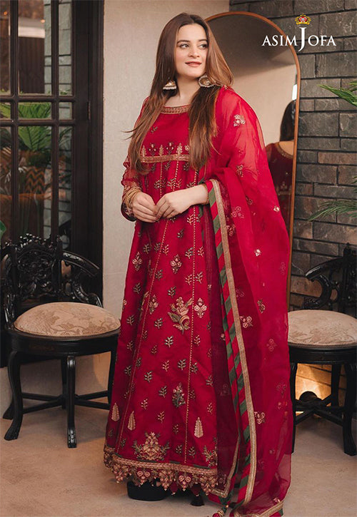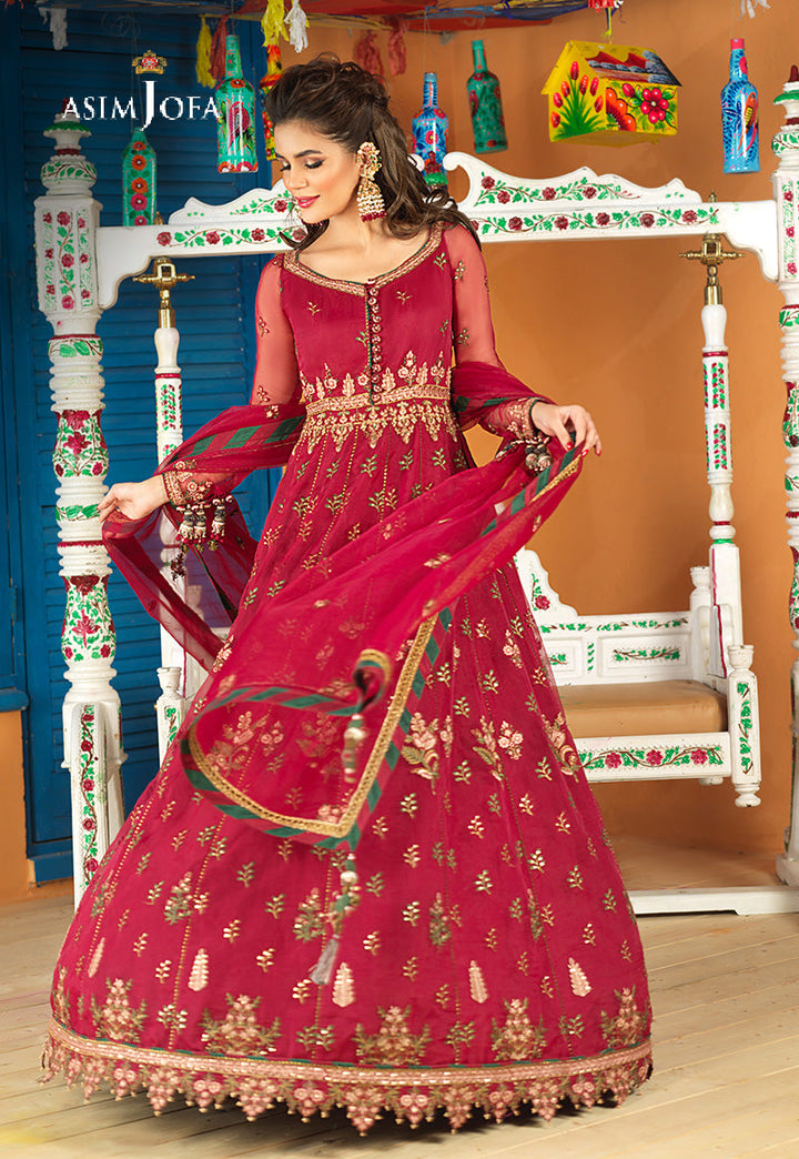 A cherry red peshwas is a royal yet elegant full length gown. This ensemble comes with beautiful gold details making it look magnificent. Fine quality thread-work is further triggering the classy look. Skillfully crafted hemline is adding depth to the overall soulful attire. Matching dupatta completes the overall magnificent look and makes this dress even more luxurious to style on any special day.