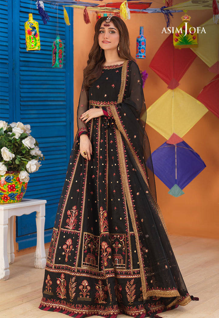 Add a touch of grandeur to your look with our beautiful pishwas in black. The attire is decorated with elegant work on kalis and gorgeous embroidered border are eminent on its voluminous lower hemline. It is paired with an embroidered dupatta in matching color blending in beautifully to create perfectly dreamy insights.