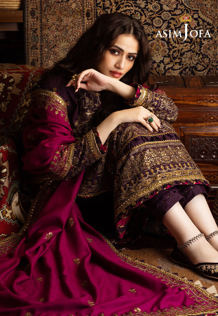 This ensemble is a breathtaking masterpiece that embodies the essence of Kashmiri dreams. The dual-tone zariwork, adorned with gold sequins, captures the essence of the region’s luxurious heritage. The embroidered details grace the ensemble with elegance and tradition, much like the captivating stories that have been woven into the fabric of Kashmir. The embroidered borders for the front and back chaak add sophistication to this exquisite outfit. The luxurious shawl envelops the wearer in the warmth and charm of Kashmir’s tradition.