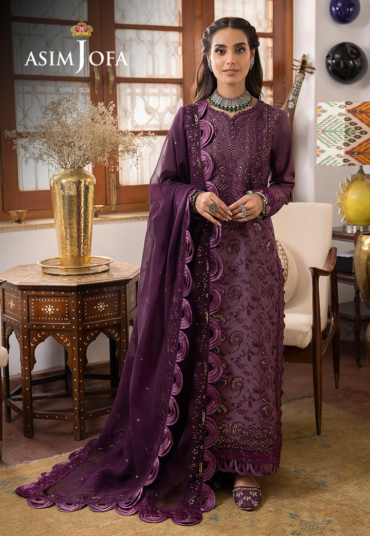 Embrace the unveiling of lilac dreams with Asim Jofa’s "Shadow Work" collection—an ensemble that's a canvas of imagination. Like a timeless painting, the shirt is adorned with vintage floral motifs, each thread a brushstroke, and sequins like specks of stardust. The dupatta drapes like a misty reverie, and the trouser is the comfort you need to journey through your dreams. In the realm of lilac, let this ensemble become your canvas of style.