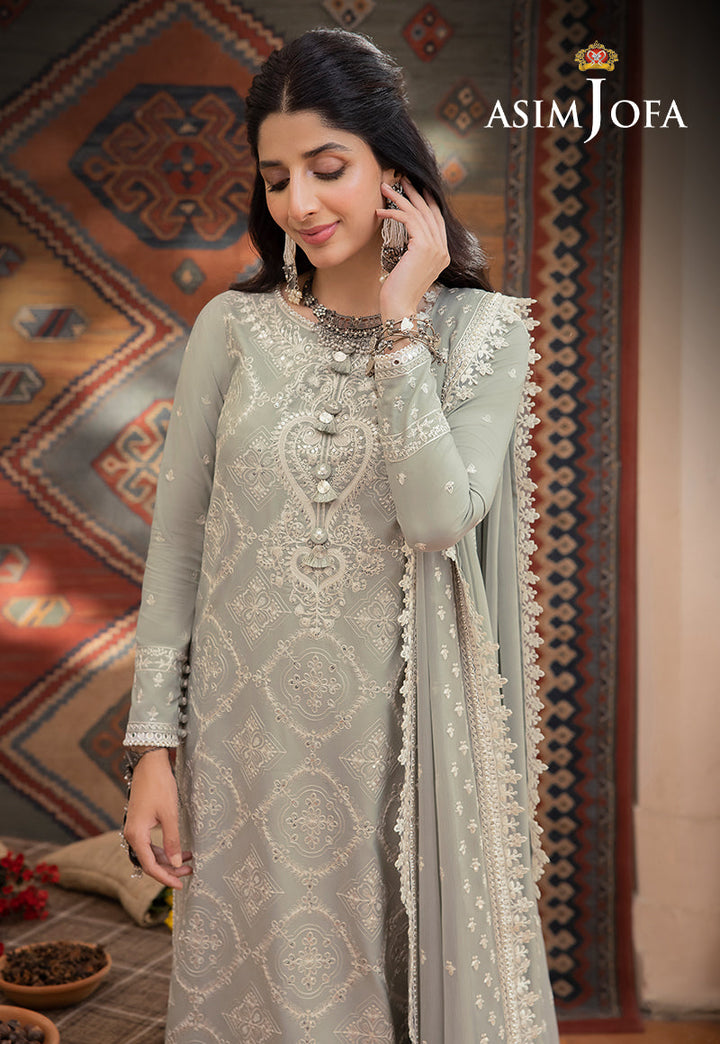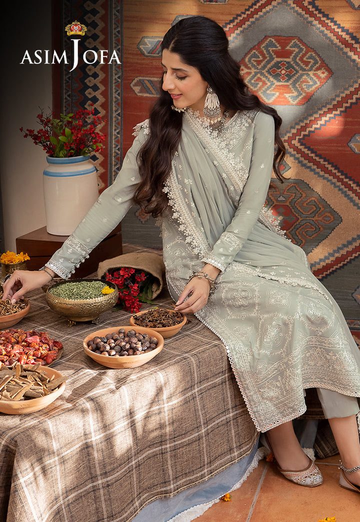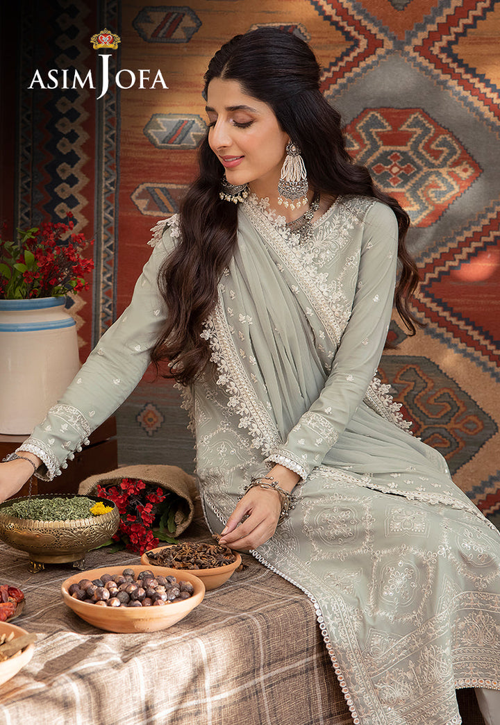 Unveil the essence of sage green elegance with our "Shadow Work" collection—a creation where threads become strokes of grace. The charm of white threadwork that graces the shirt with intricate artistry. Acanthus embroidery is a tribute to timeless motifs, while the dupatta's borders and the shirt's neckline and edges shimmer with the same delicate finesse. The embroidered lace for the front and back yoke adds allure, and the plain back offers a touch of simplicity. The Chiffon dupatta is a cascade of dreams. Immerse yourself in the unveiling of sage green elegance, where threads and style come together.