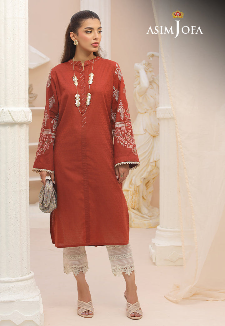 Embark on a journey of Indian elegance with this rust self-jacquard shirt, where contemporary motifs intricately weave with traditional charm, creating a tapestry of cultural grace on the sleeves.