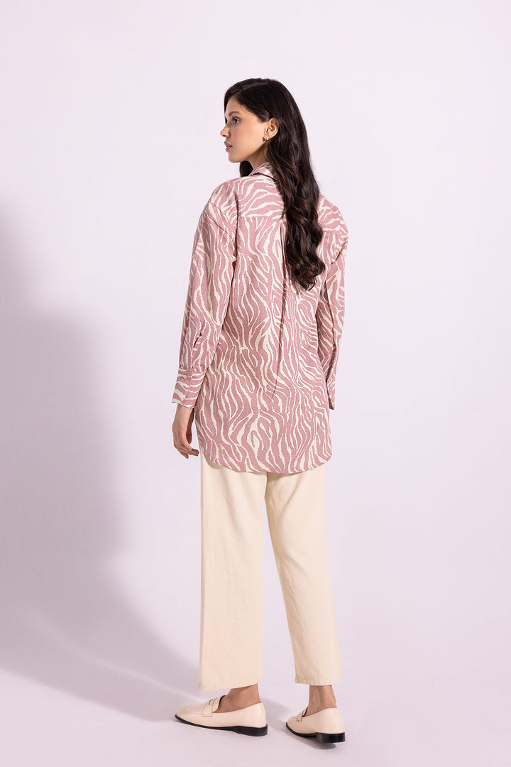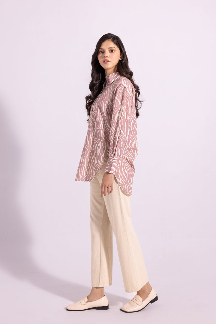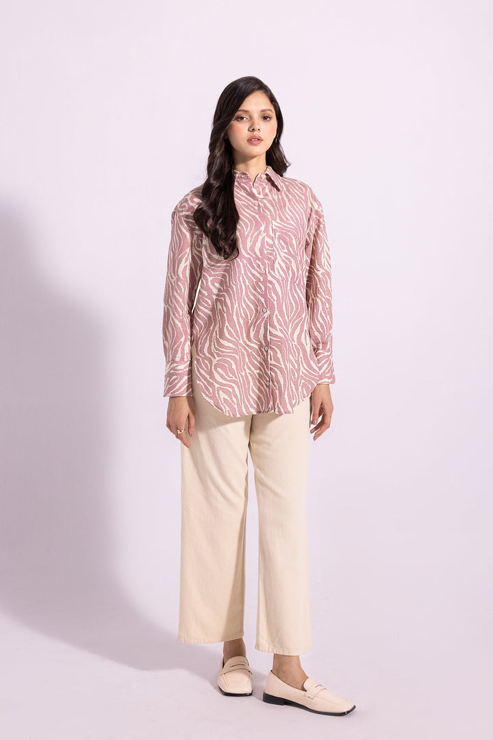 This sophisticated shirt is perfect for making an attractive statement. It features a graceful, light shade canvas adorned with captivating pattern printed in lilac mist hues. This trendy piece is sure to add a touch of elegance to any look.
