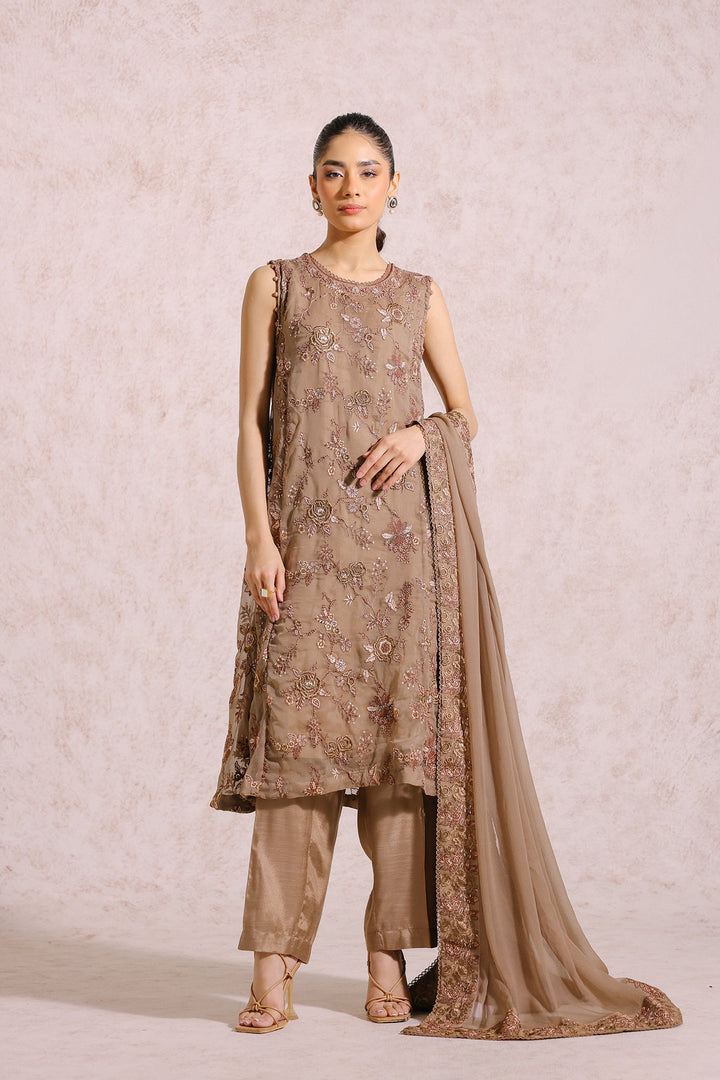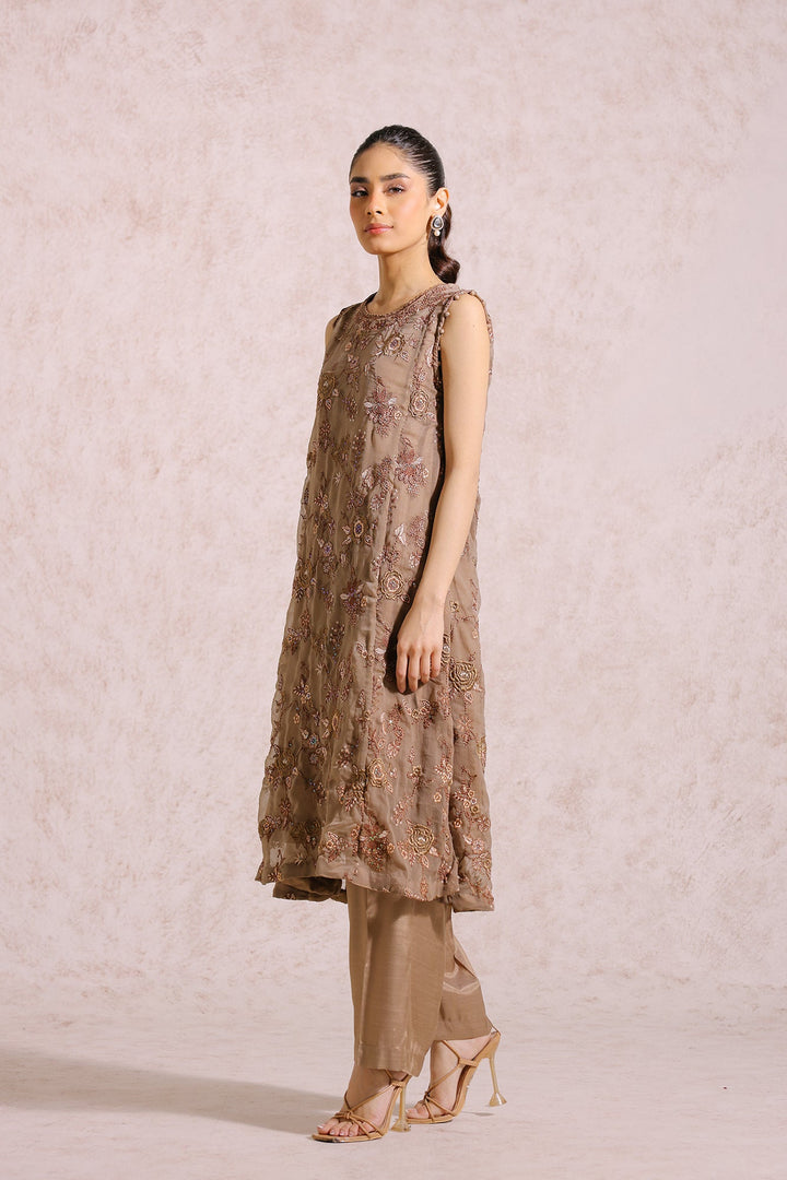 -Fabric: Crinkle Chiffon (Shirt + Dupatta) & Shiny Pk Raw Silk Trouser
