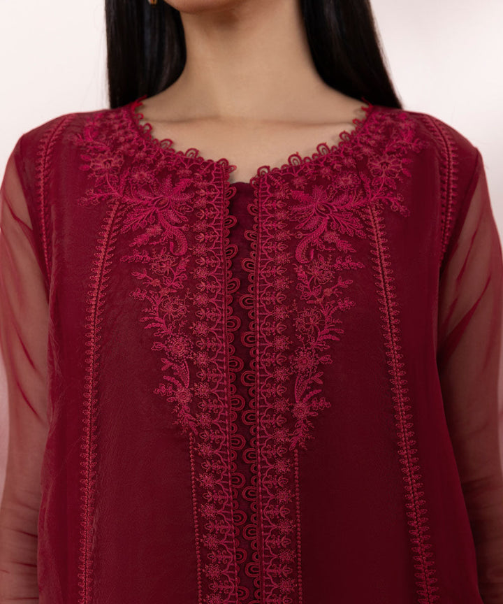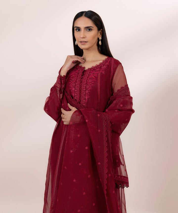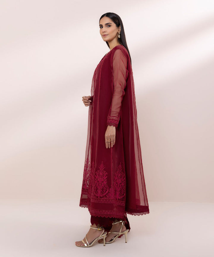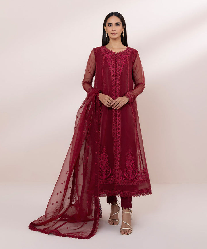 3 Piece - Embroidered Organza Suit