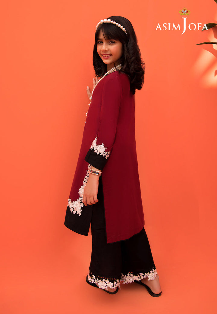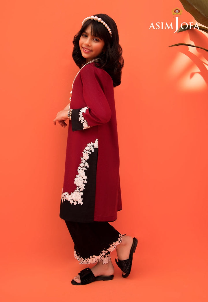 An exquisite blend of red and black, this traditional outfit is perfect for young girls who want to make a statement. The delicate ivory and grey resham embroidery is complemented by transparent sequins, adding just the right amount of shimmer. The flowery lace on the daman, sleeves, and culottes pant give it a youthful yet sophisticated vibe.