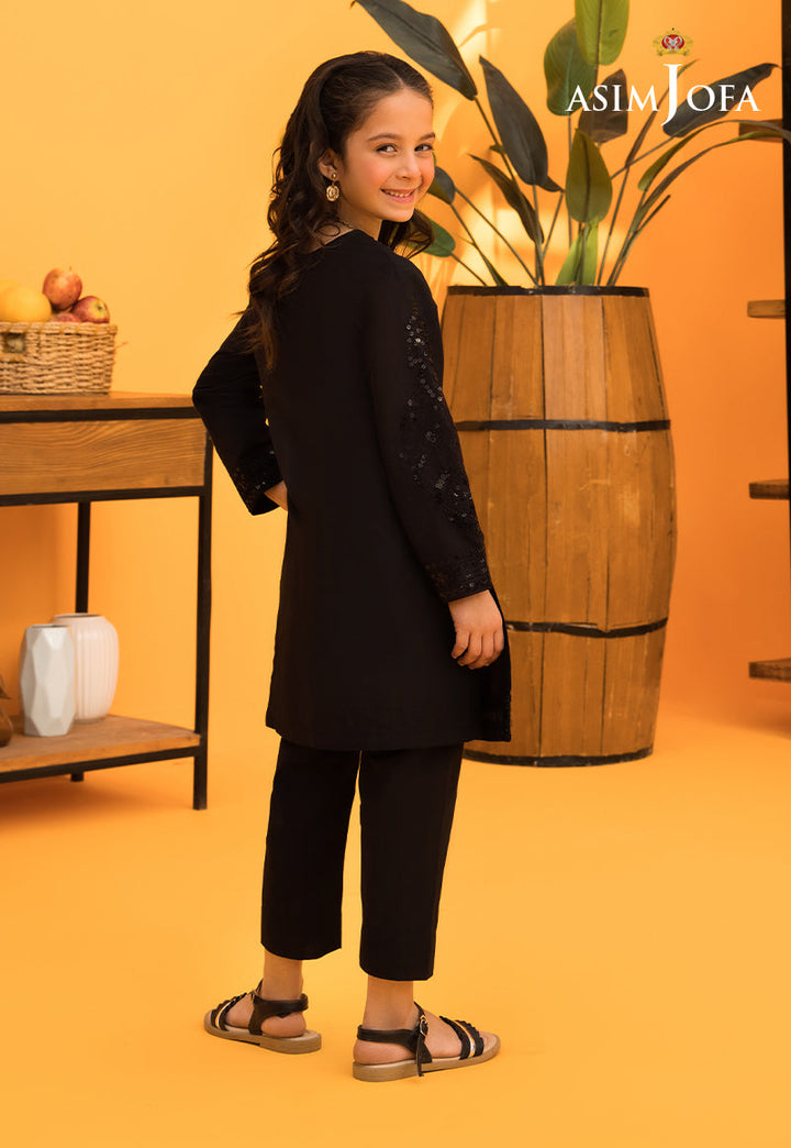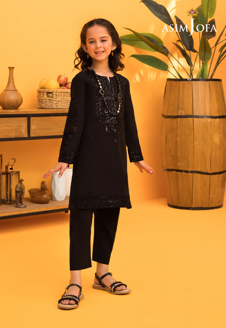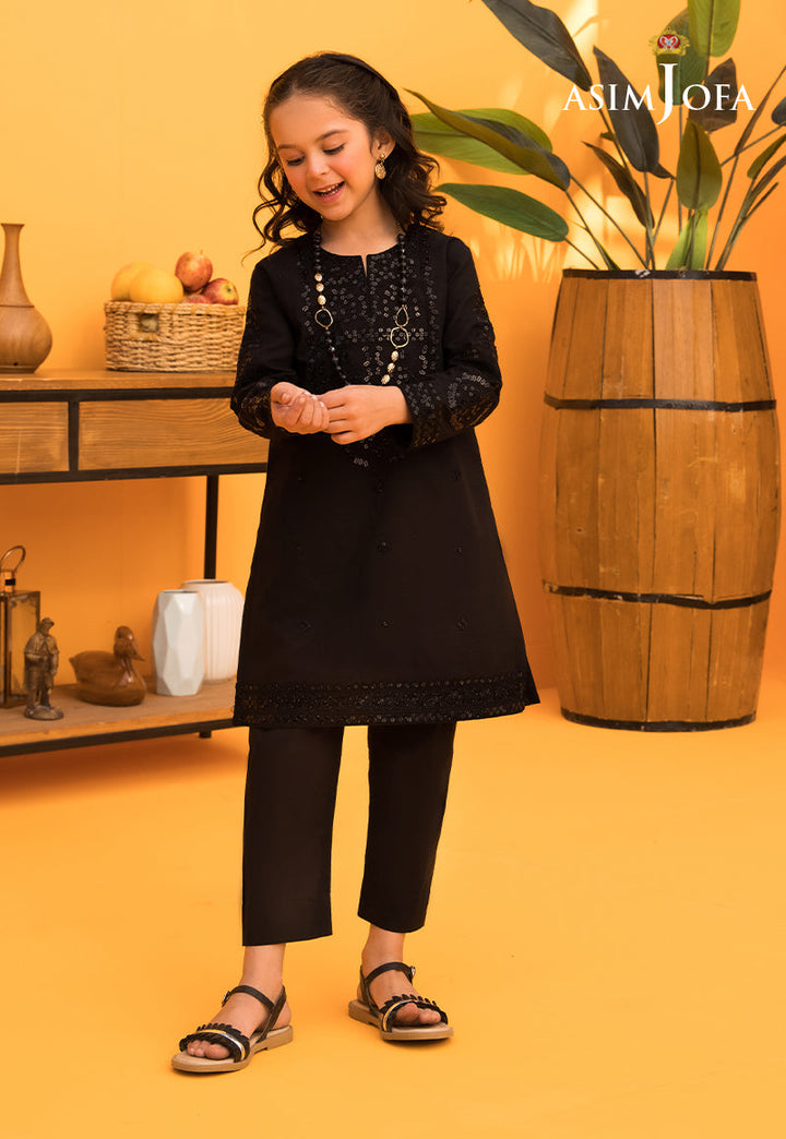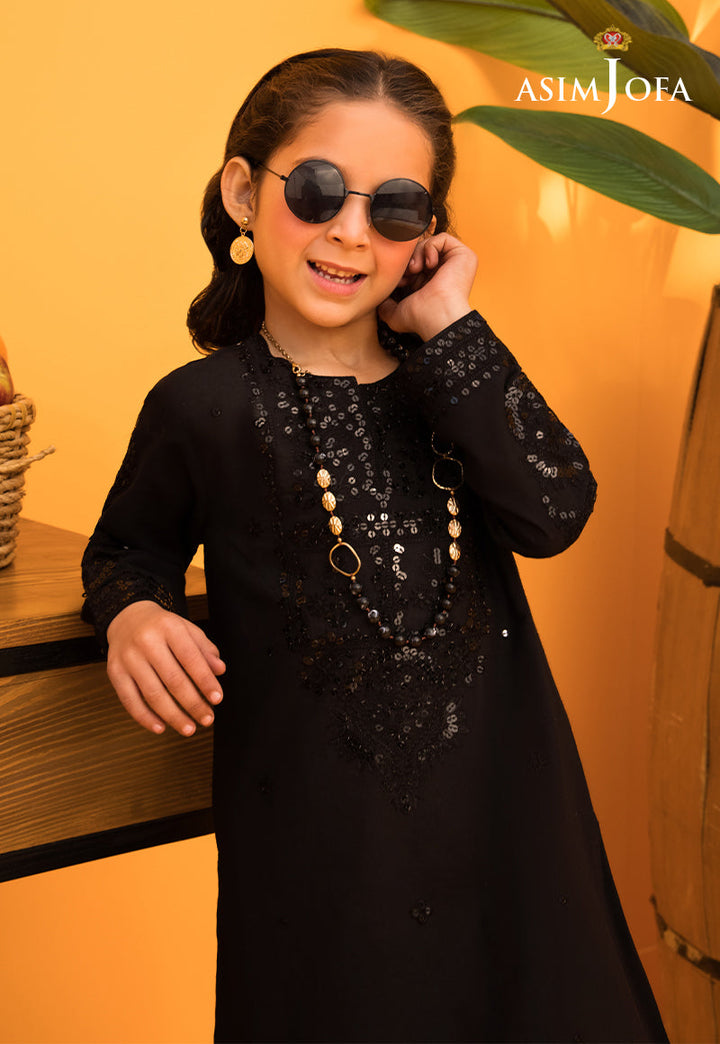 This black cambric shirt and narrow pant set, with its alluring black resham and transparent sequin embroidery, exudes an understated elegance and effortless style that any young fashionista would love to flaunt.