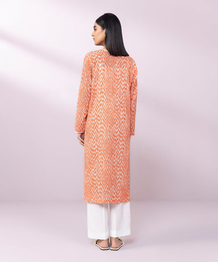 Printed Front, Printed Back, Full Sleeves, Round Neckline with a slit & lace