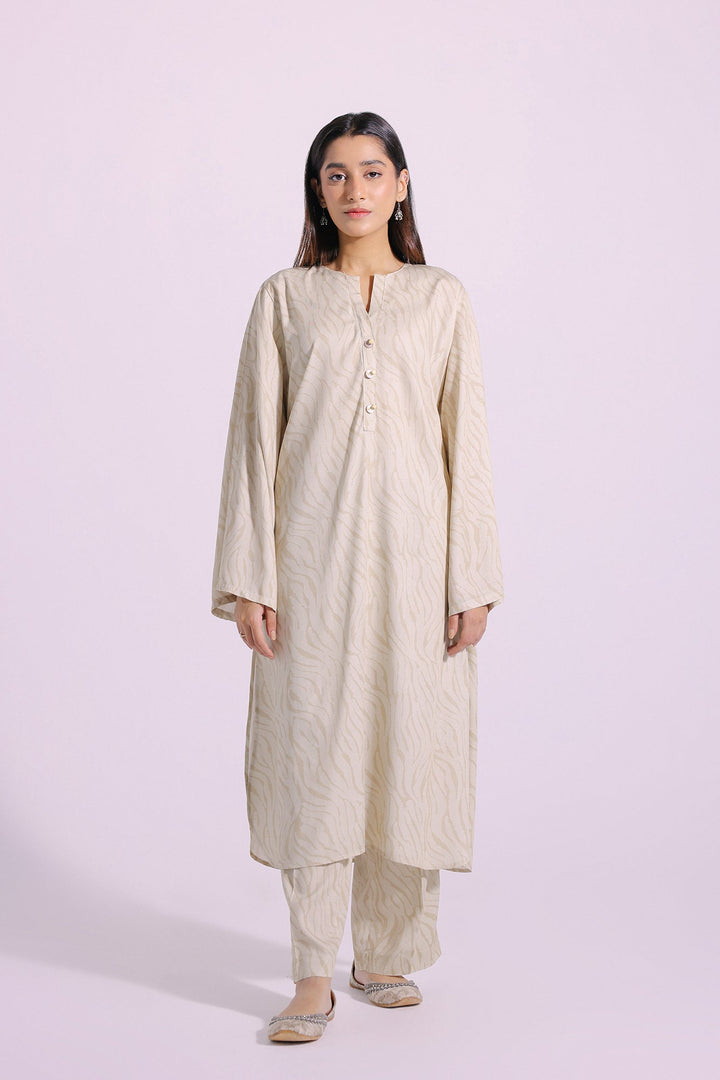 A mesmerizing composition is layered over this graceful ensemble rendered in lemon icing shade. It depicts a classy shirt adorned with captivating pattern printed in attractive hues and enhanced with trendy buttons at front. Paired with a matching culotte trouser, this style statement outfit is the epitome of grace to embrace this happening season.