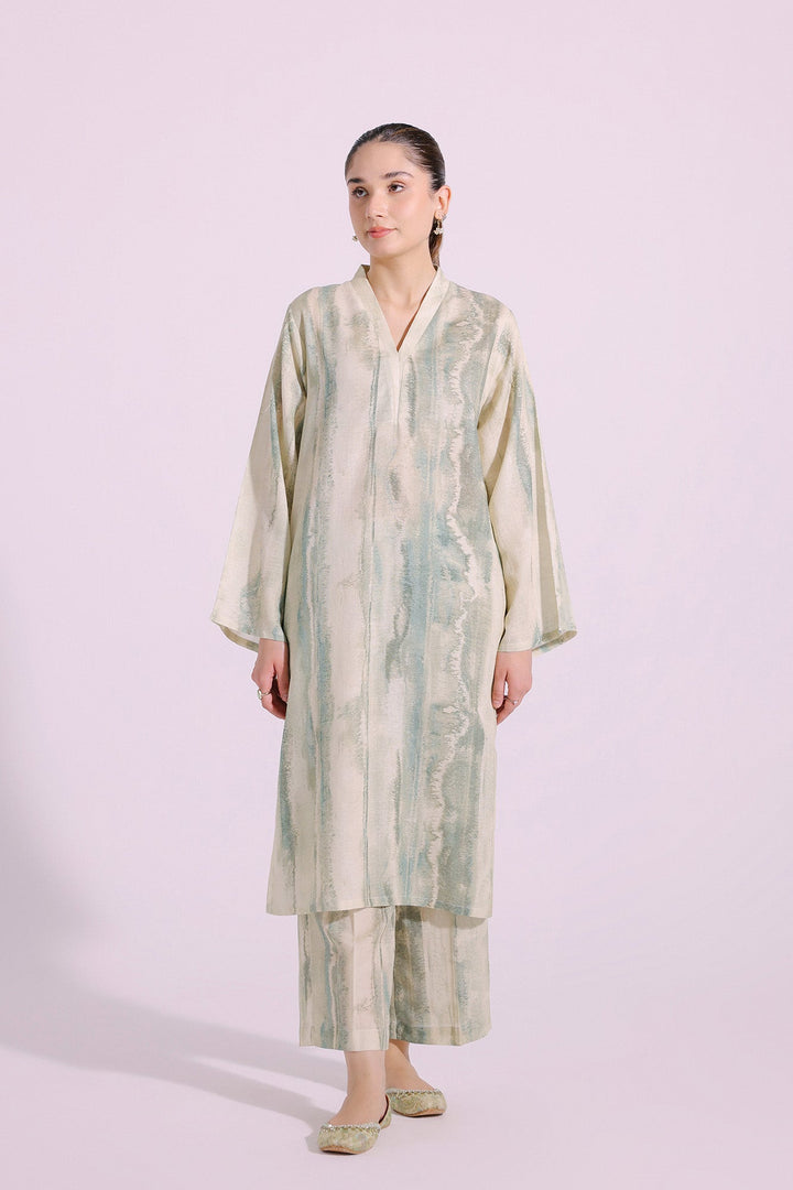 An enchanting composition is layered over this graceful ensemble portraying a mesmerizing stone canvas. It depicts a contemporary silhouette shirt adorned with beautiful tie and dye prints in fascinating colors and illustrates an artistic composition. Paired with a matching trouser, this aesthetically rich outfit is a great option for everyday events.