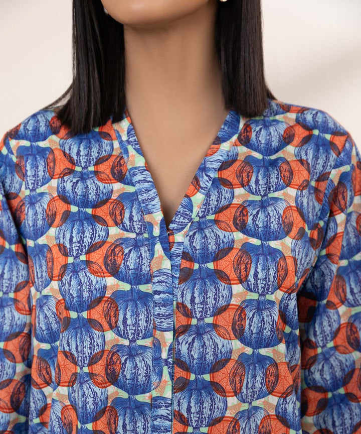 Printed Front, Printed Back, Full Sleeves, Y Neckline