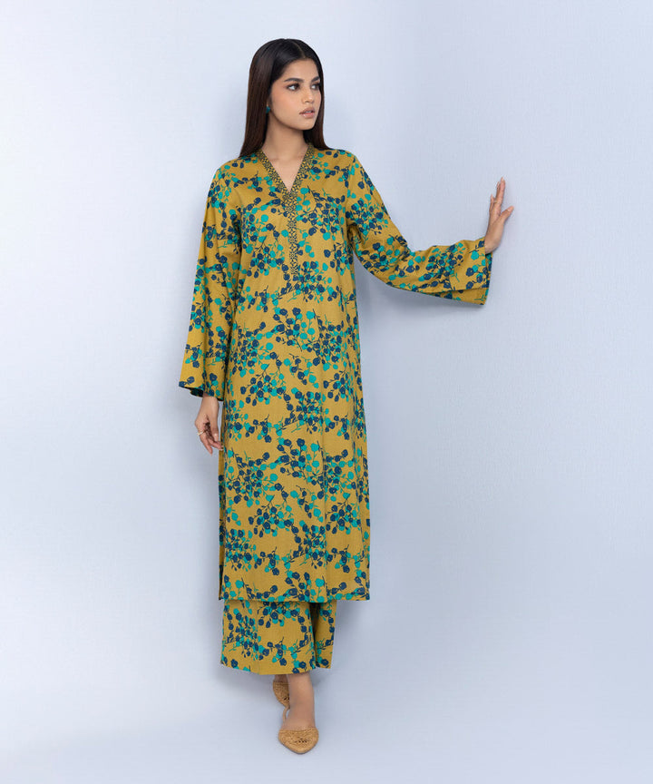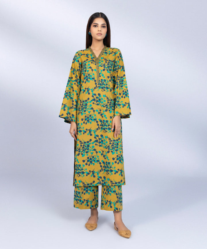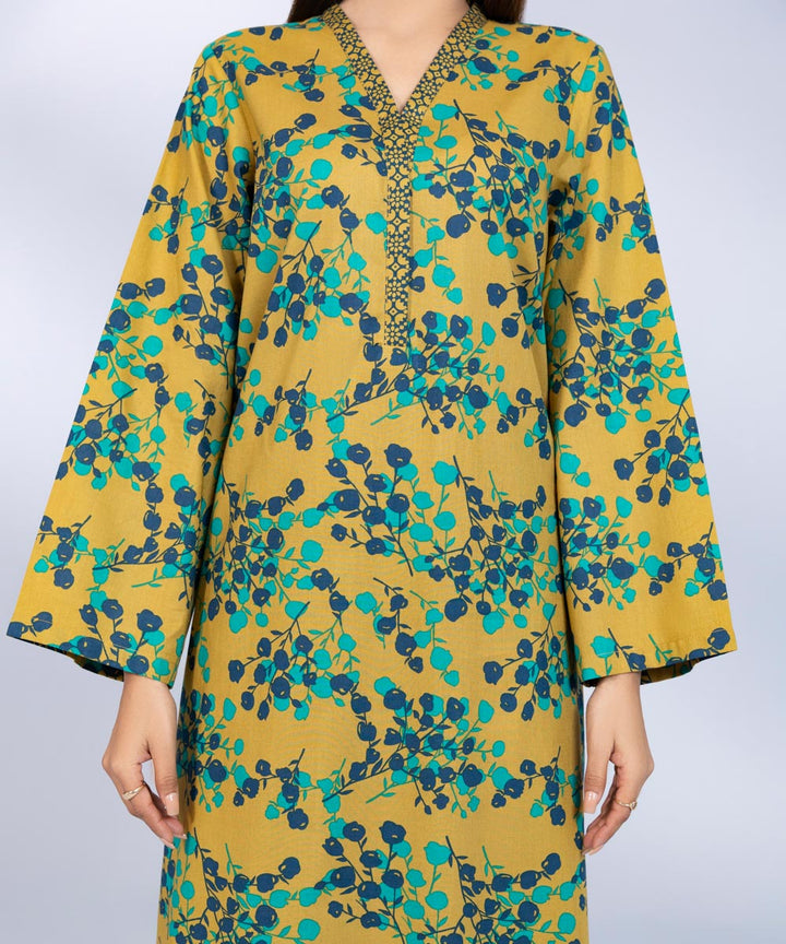 Refresh your wardrobe with our deep mustard straight silhouette accented with intricate illustrations.