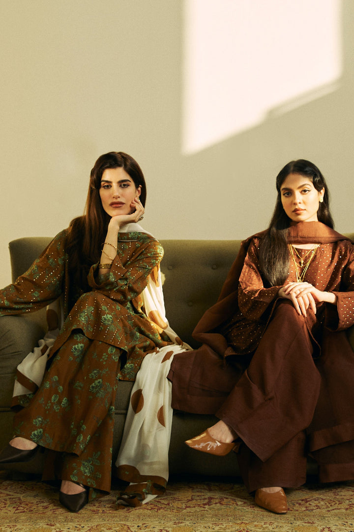 Our signature floral printed co-Ord set has crystal work on the shirt and is paired with a polka dot dupatta.