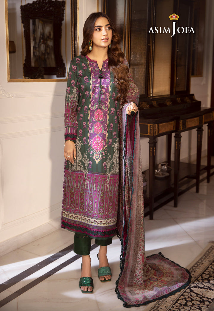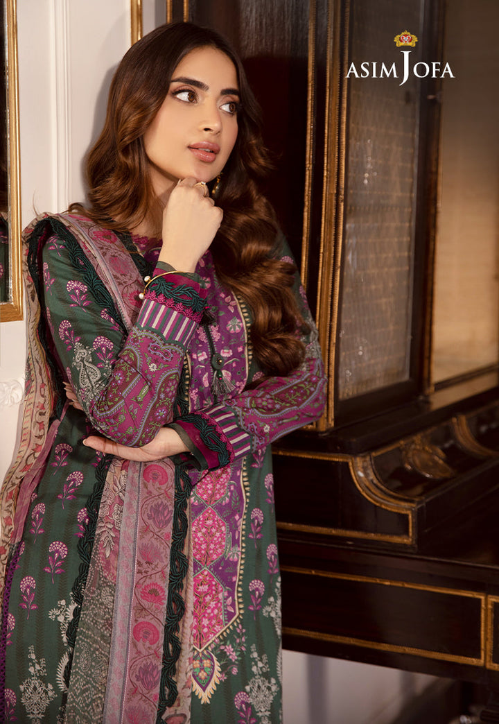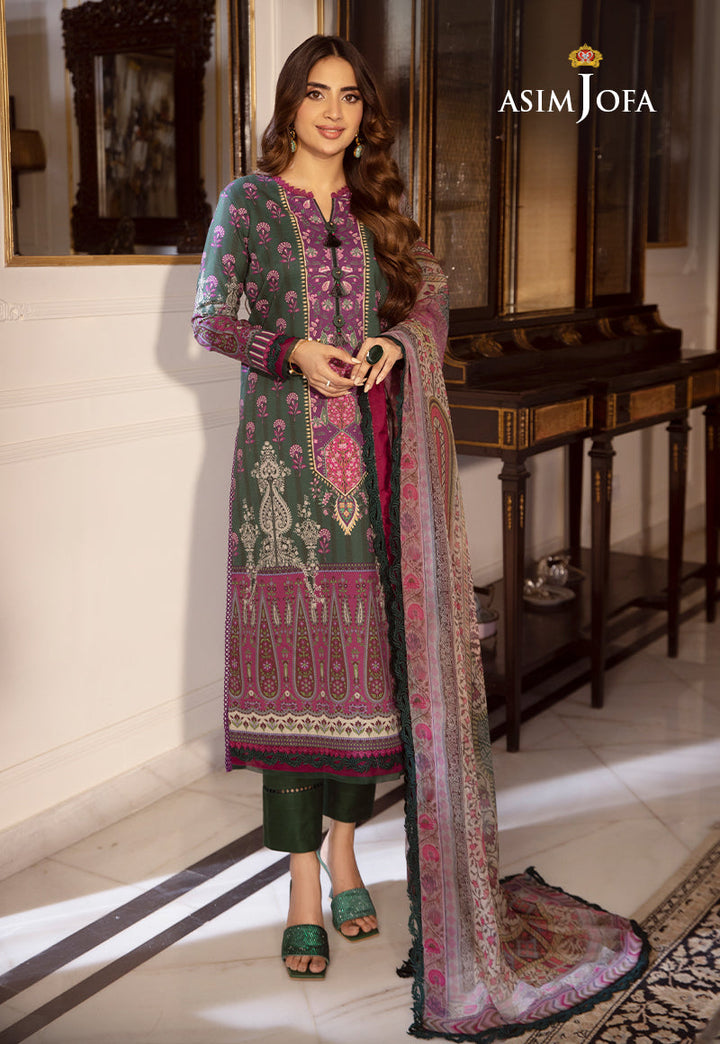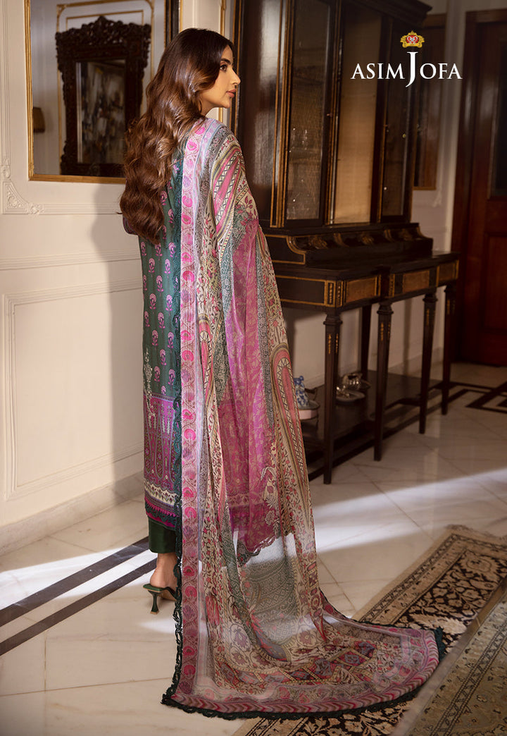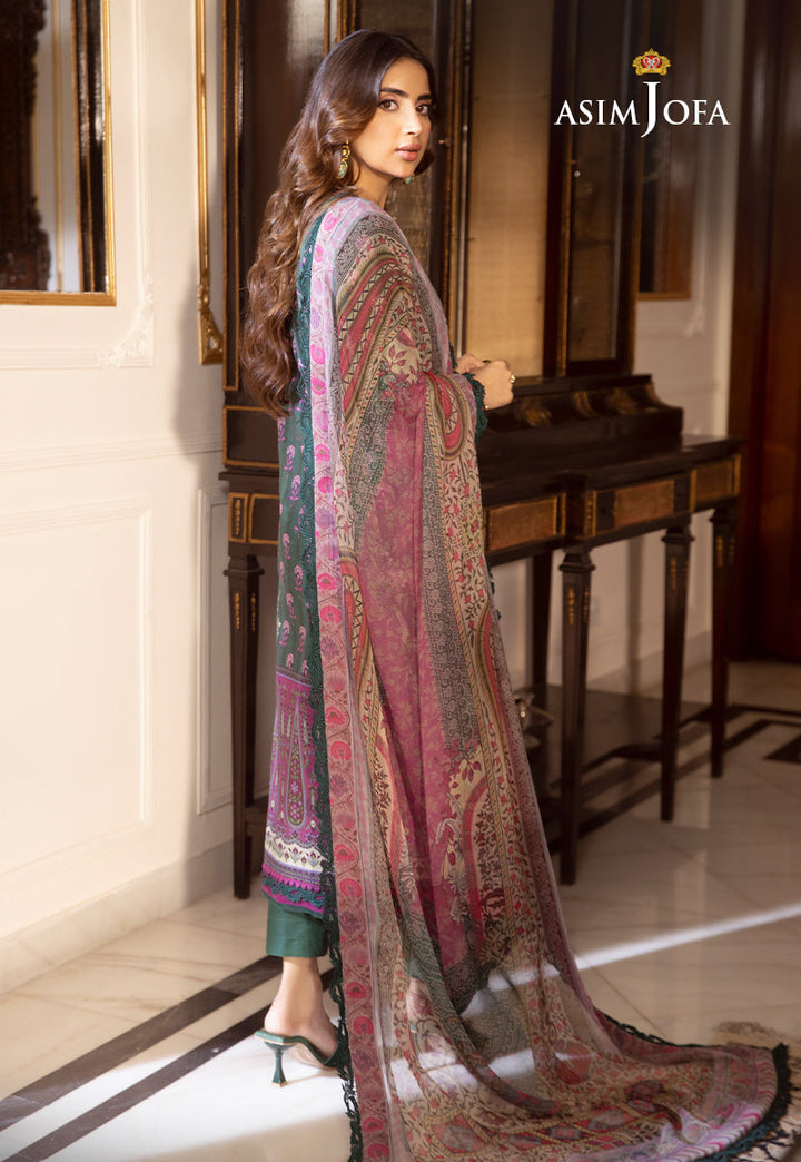 Revel in the kaleidoscope of colors as the ASRA collection presents an ensemble that transforms bottle green into a canvas of vibrancy. Polychromatic florals and paisleys intertwine on the shirt, portraying the essence of a lively garden. The dupatta continues the tale, echoing the same motifs and inviting you to immerse yourself in the spectrum of nature.
