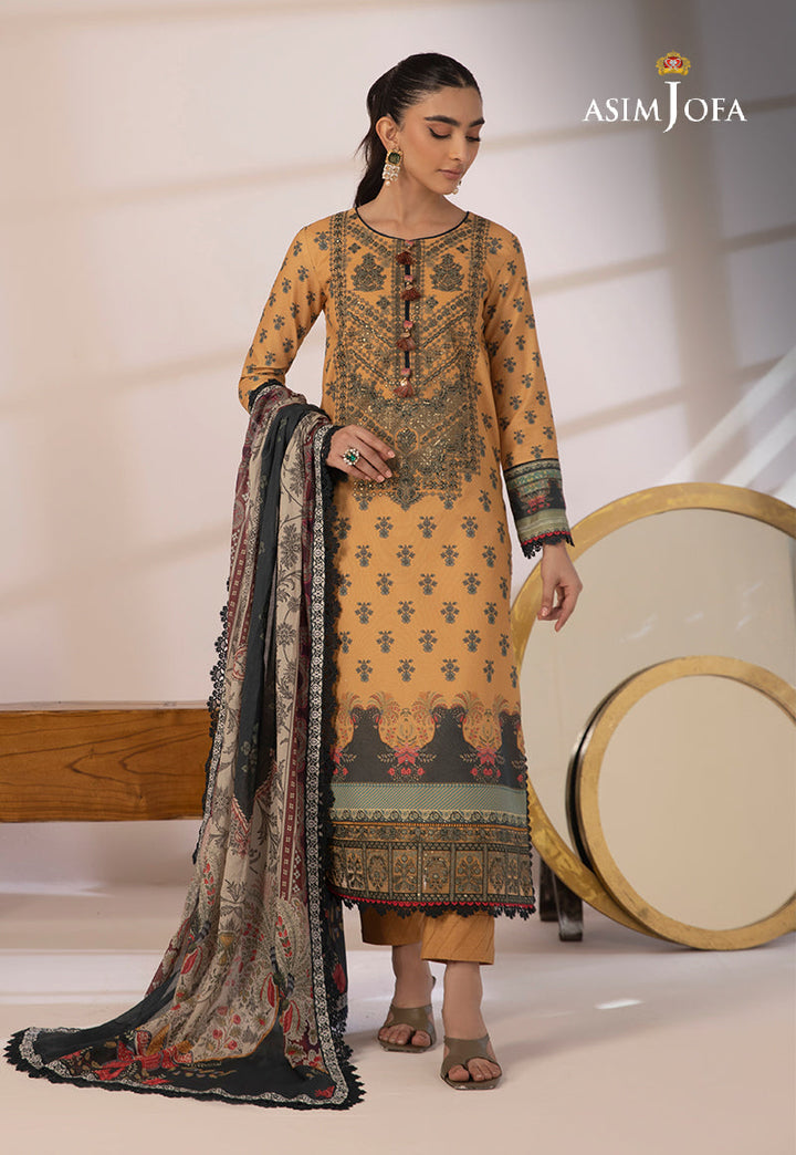 Embrace the whimsical charm of this honey gold design from the ‘Asim Jofa Prints’. The stunning design and bright hues create a surreal dreamscape of beauty. The cambric shirt and lawn dupatta have gorgeous borders on sleeves and shirt, as well as an Indian-inspired floral pattern, creating a harmonious composition of colors and textures. Radiate vibrancy as Sana Sardar and enjoy this joyful journey of ‘Asim Jofa Prints’!