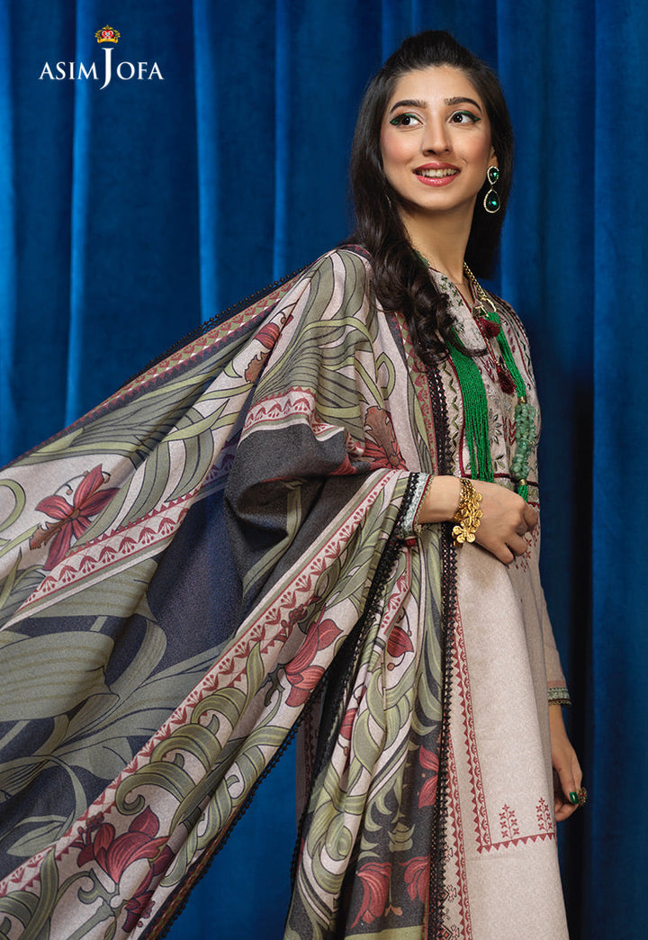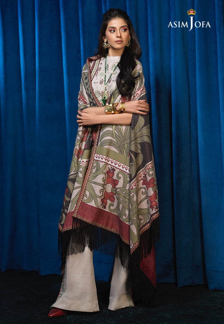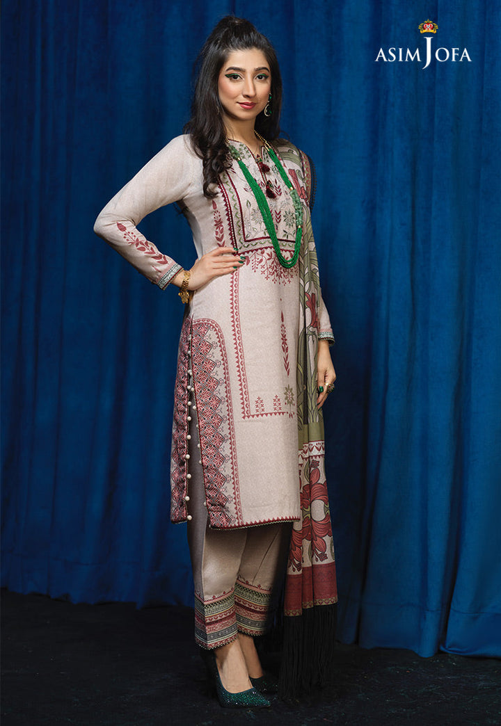 An amalgamation of ethnic motifs composed on a cambric base creating a fetching design. It is complemented by a nicely executed embroidered neckline in geometric design and a richly printed dupatta. A dyed trouser completes this package.