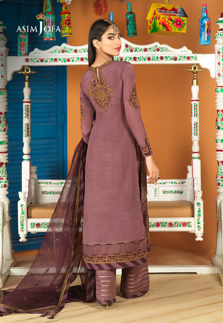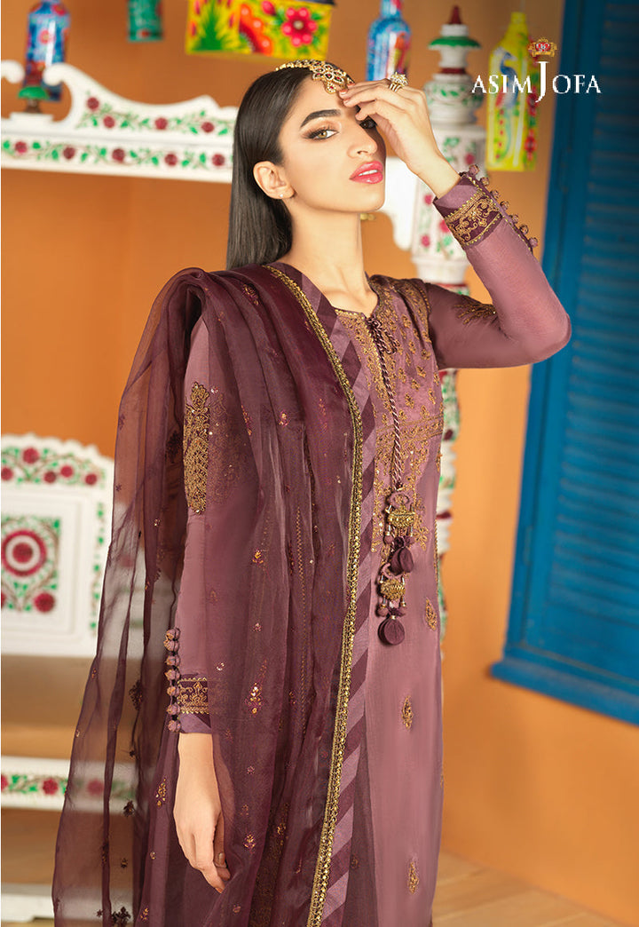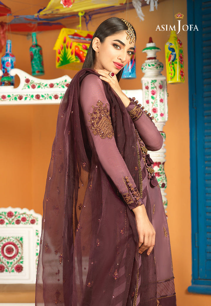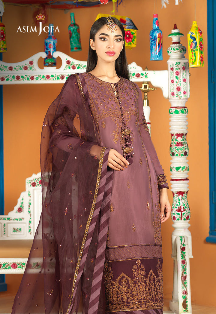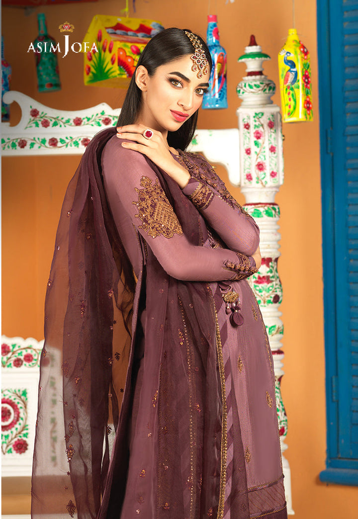 In a divine shade of purple this ensemble celebrates elegance. It is made from lustrous viscose silk exclusively embroidered with subtle blend of tobacco zari and single thread color. This breathtaking combination and a beautifully composed embroidery pattern speaks for its elegance. This subtle masterpiece is styled with a voluminous Ijaar and stellar dupatta resulting in a noteworthy look for day or evening soirees.