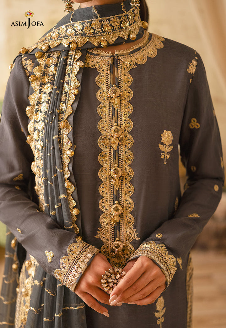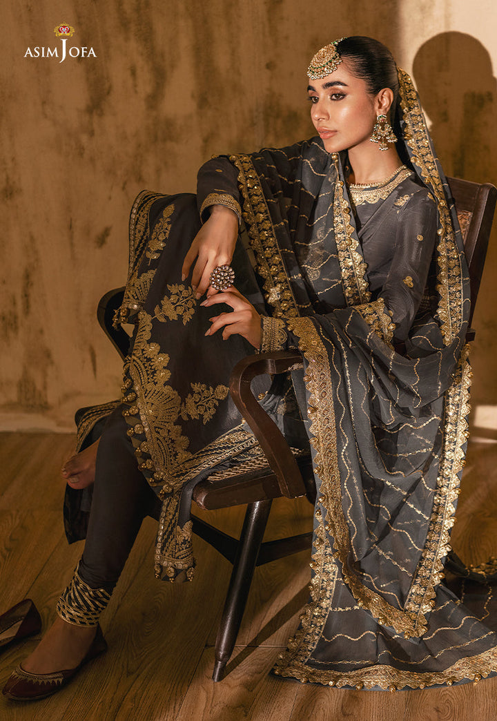 Keeping Mughal aesthetic alive with this silk straight shirt. The article is a piece of an art done solely with zari and sequins. Indian gold is used to create floral motifs and it’s giving all traditional vibes that it needs. The geometric border is splendidly done with zari on damaan and chaaks. The shirt comes with a chiffon dupatta that has diagonal and straight sitara work and fine detailing on borders on all sides of it worn over silk pants.