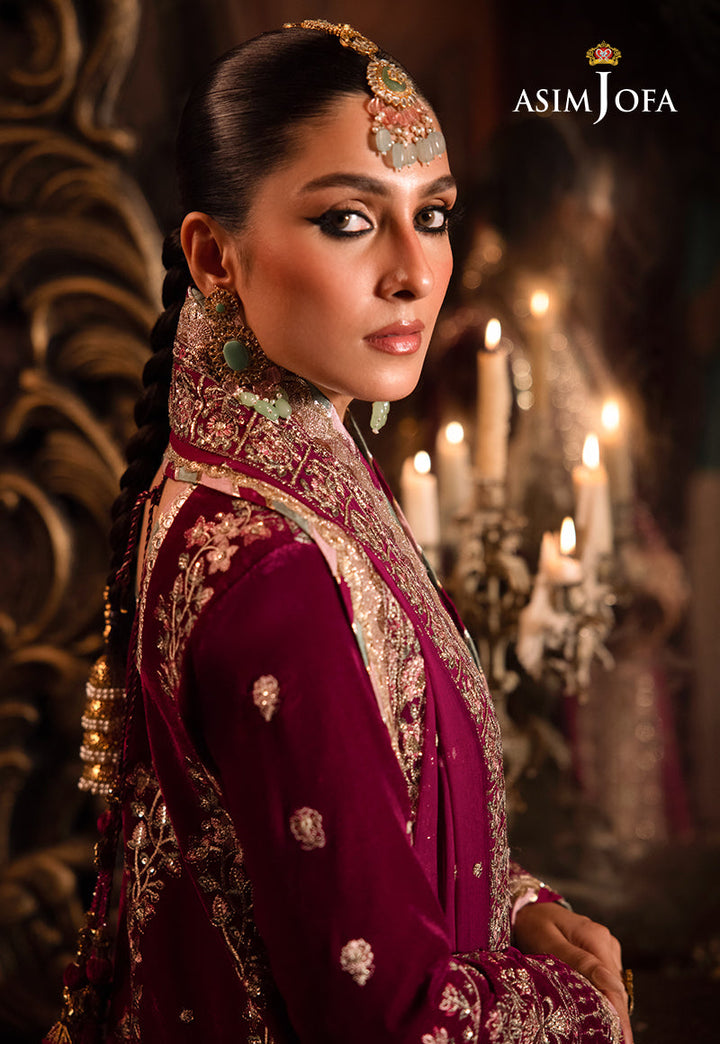 Blossom in the vibrant hues of magenta with this ensemble adorned with dark and pale pink, basil green threadwork, and the gleam of two-toned coppery gold zari, lurex and banarsi gold cupped sequins. The shirt is embroidered floral masterpiece, evoking the beauty of a garden in full bloom. Sleeves with embroidered borders add a touch of sophistication while the embroidered back on velvet elevates the allure. The embroidered border for chaak and daaman, paired with the four-sided borders on the dupatta completes this outfit, creating a harmonious blend of magenta blossom and coppery gold gleam.