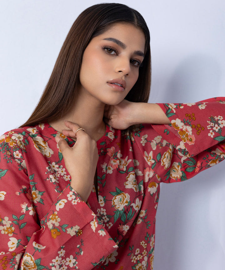 Refresh your wardrobe with our vermilion red straight silhouette accented with intricate illustrations.
