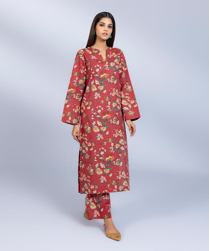 Printed Front, Printed Back, Full Sleeves, Band Neckline with a slit