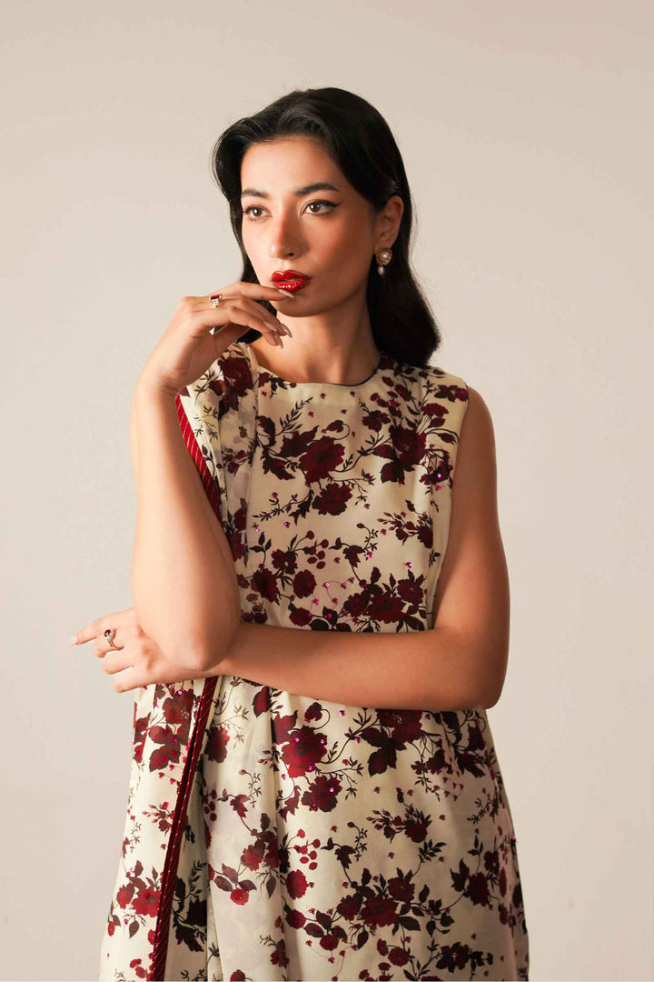 Our signature floral printed set has sequins all over and is paired with the same printed dupatta.